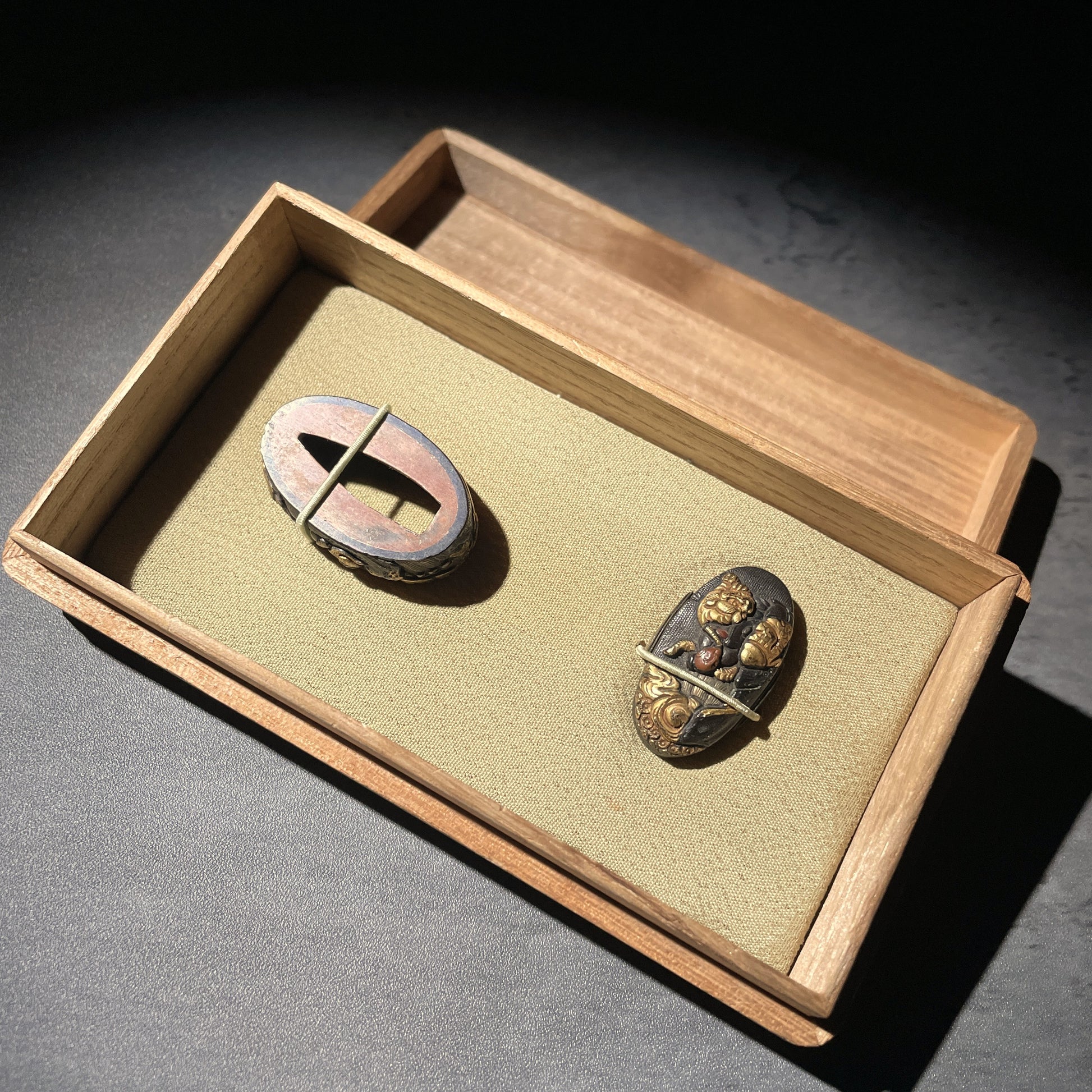 唐人物 (Tojinbutsu) Fuchikashira, Shakudo back, Edo period