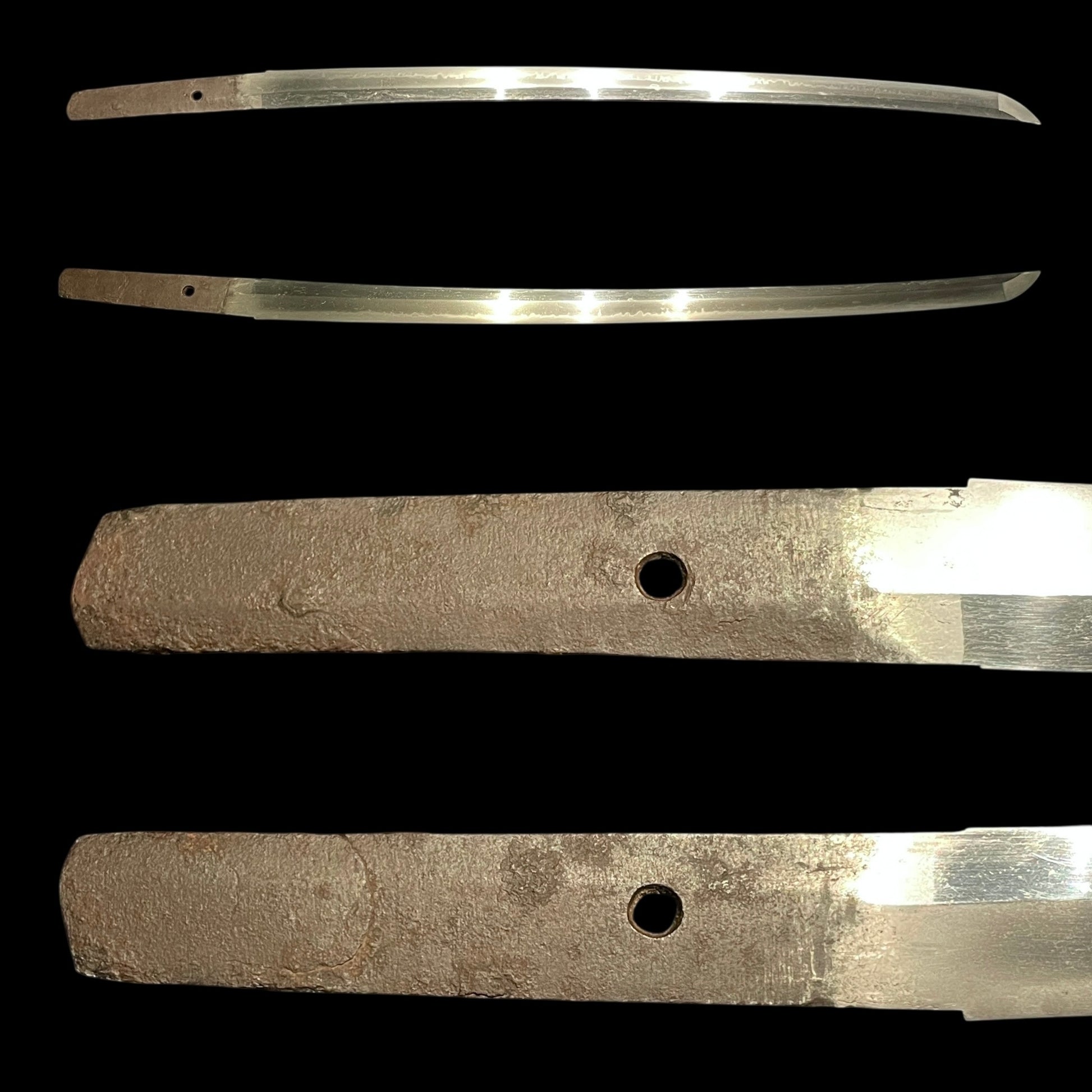 Amazing Hamon Long Wakizashi in Shirasaya, Edo period mumei