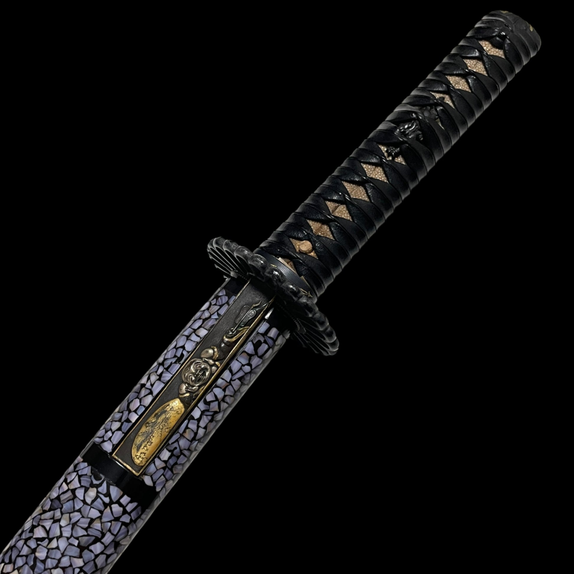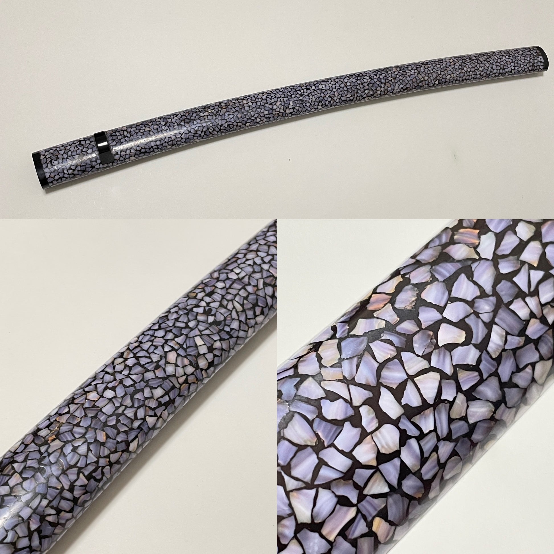 The Scabbard is made of small crushed shells carefully pasted on it, making it a very intricate piece.