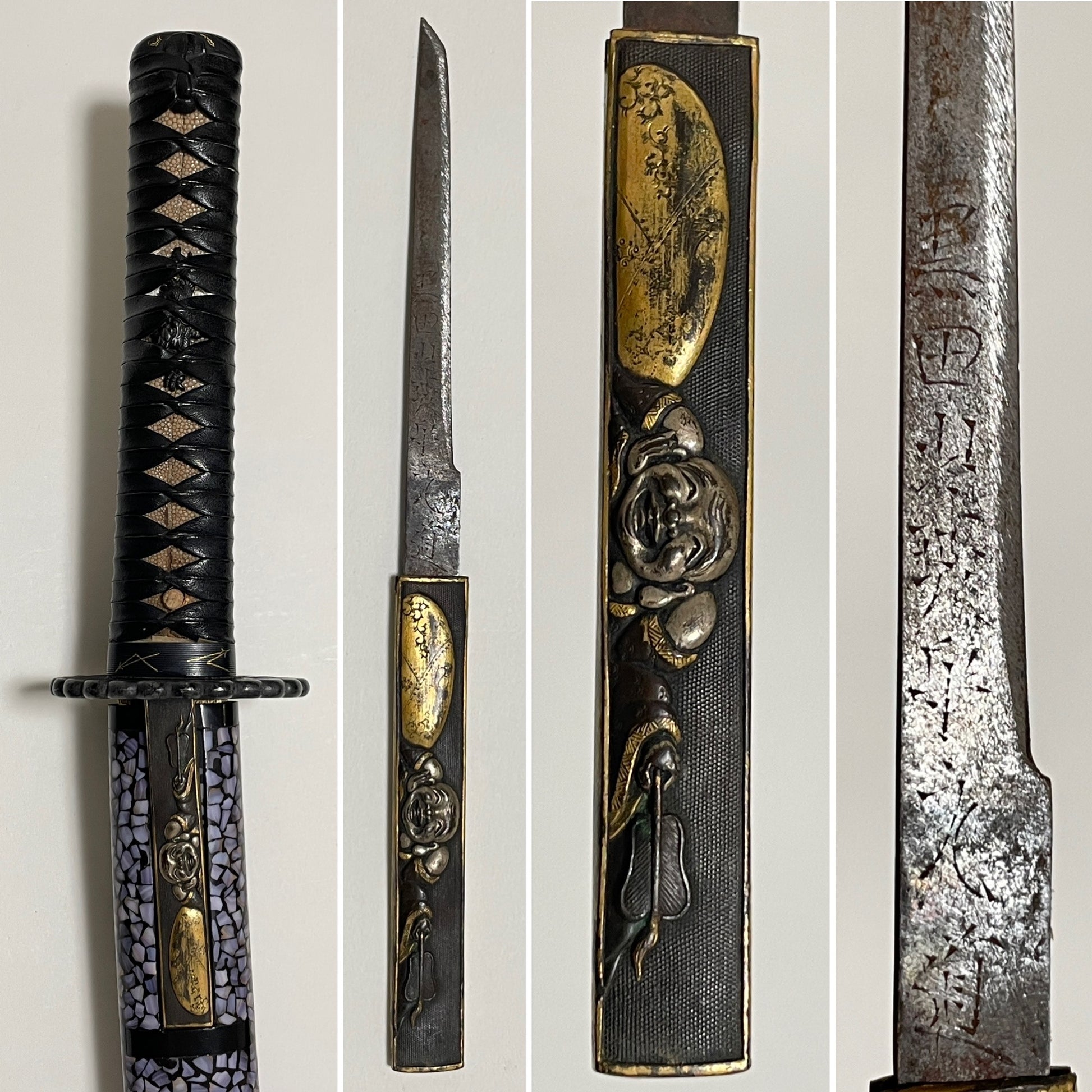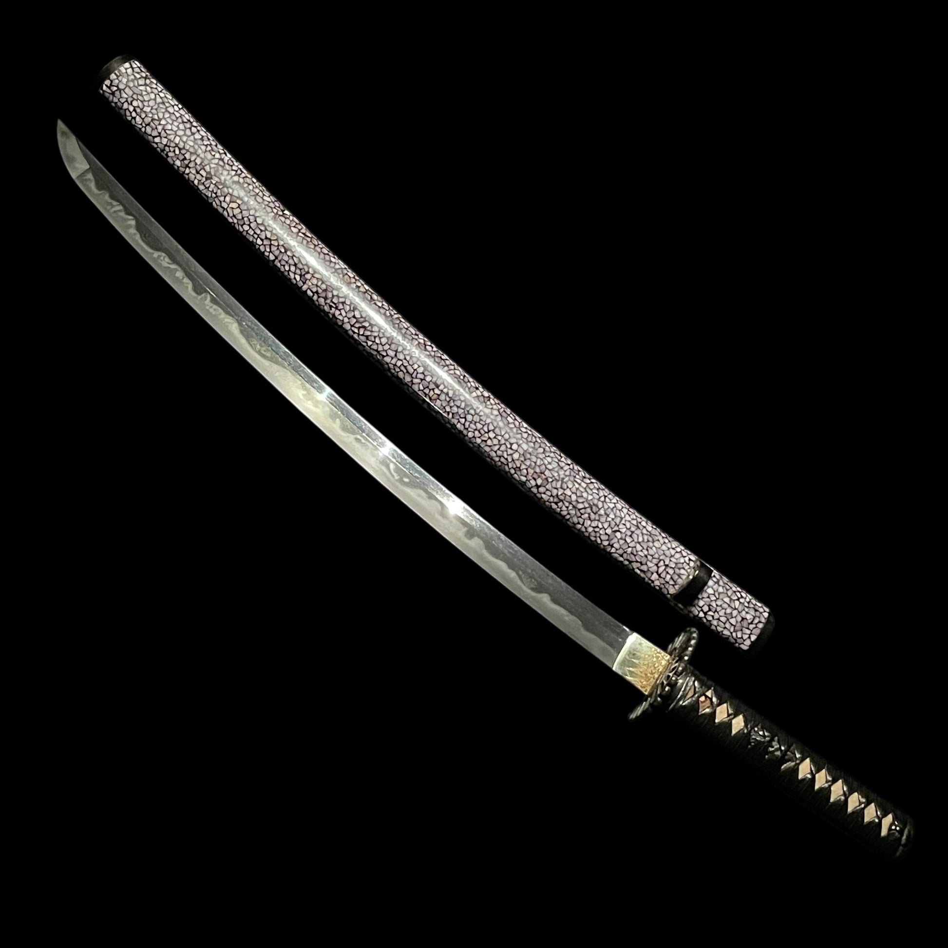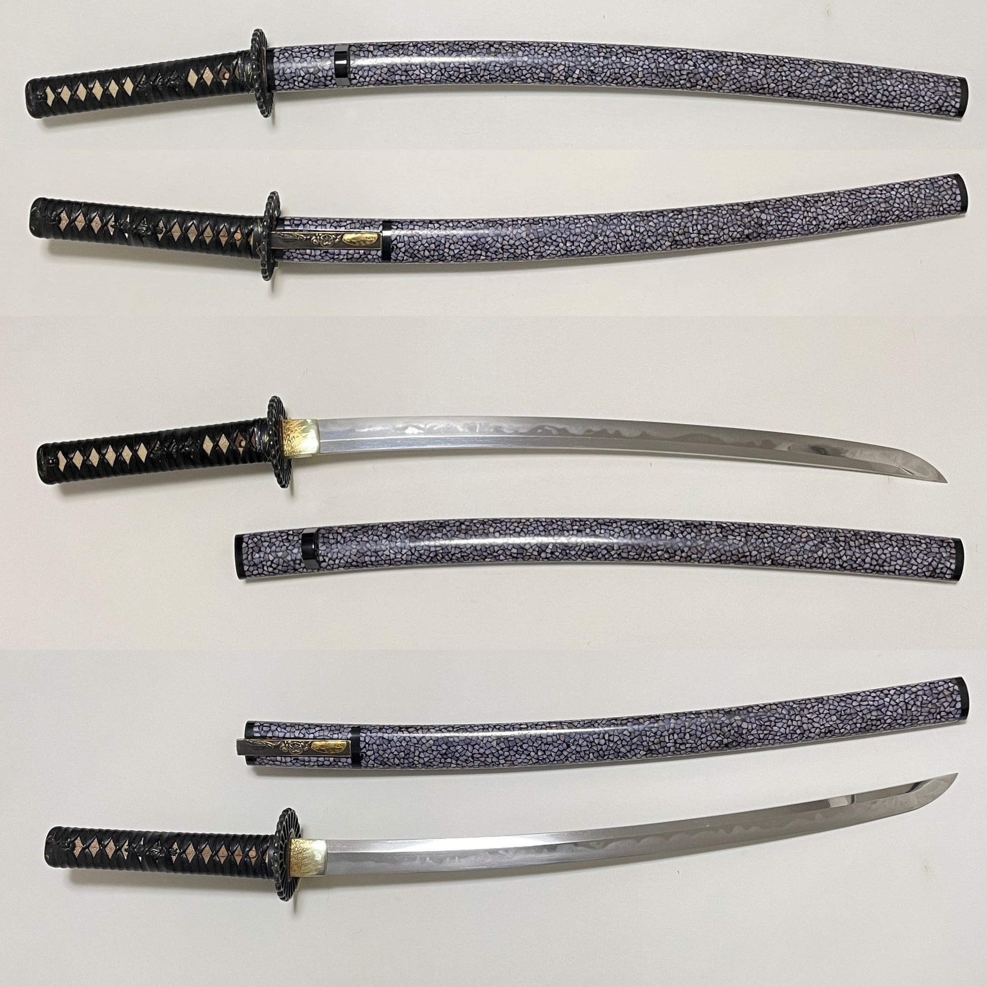 Amazing Hamon Long WAKIZASHI, Raden Koshirae 螺鈿拵, Katsumitsu 勝光 signed