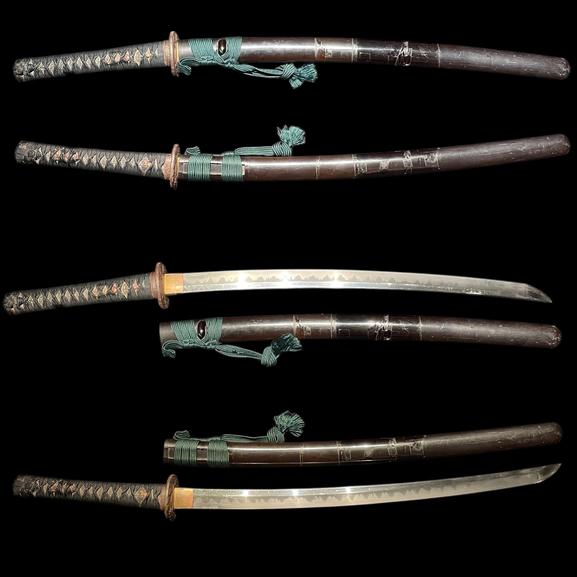 Amazing Hamon WAKIZASHI, Dragon Tsuba, Oosaka Shinto 大阪新刀, Edo period