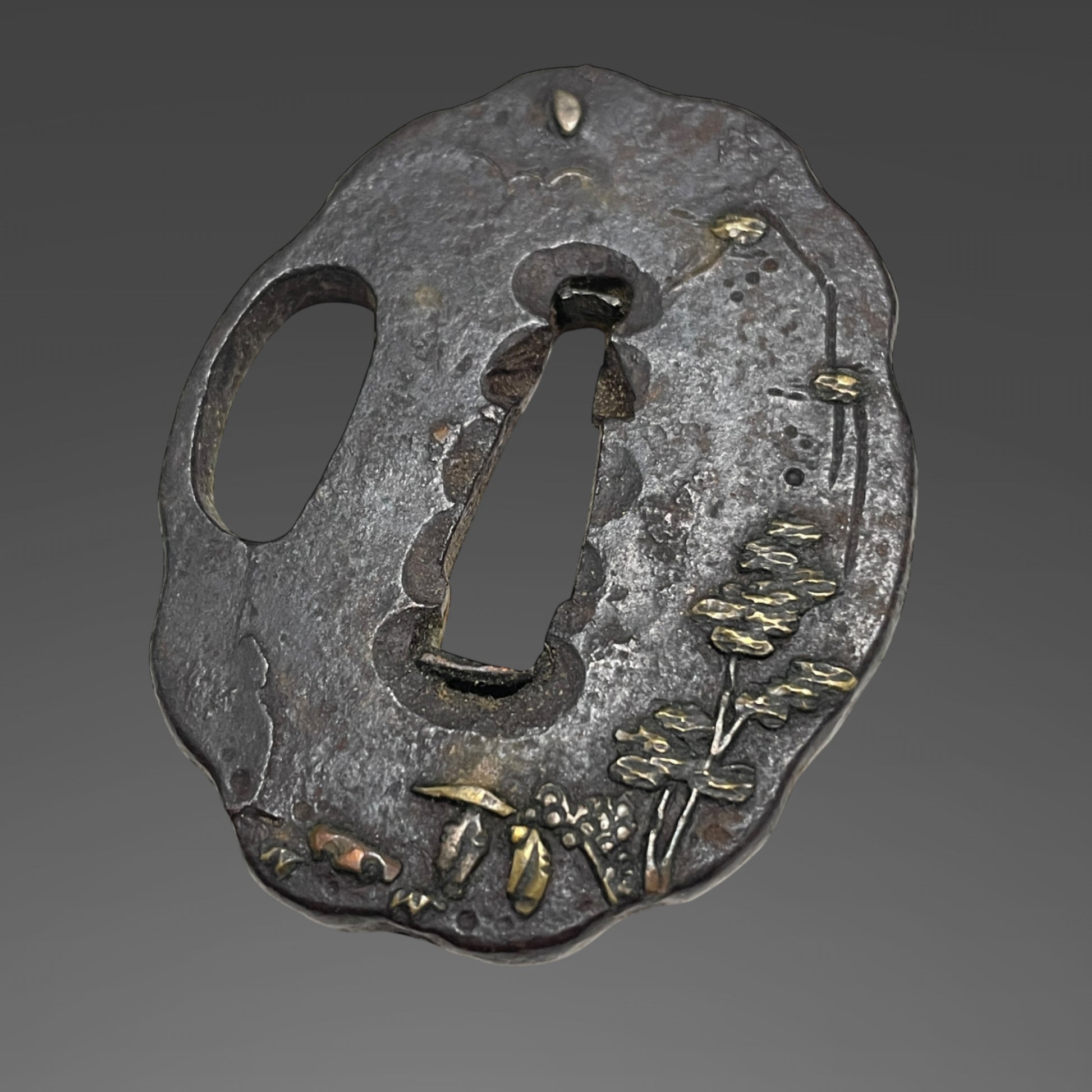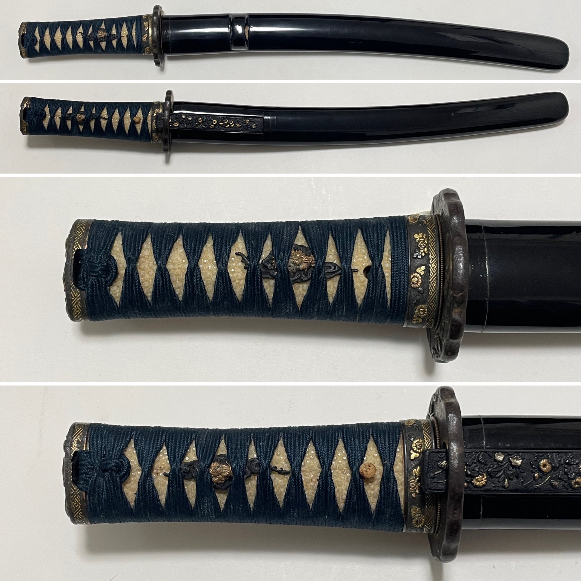 Authentic Koshirae for Tanto or Short Wakizashi, with Kozuka, Flower Fuchikshira