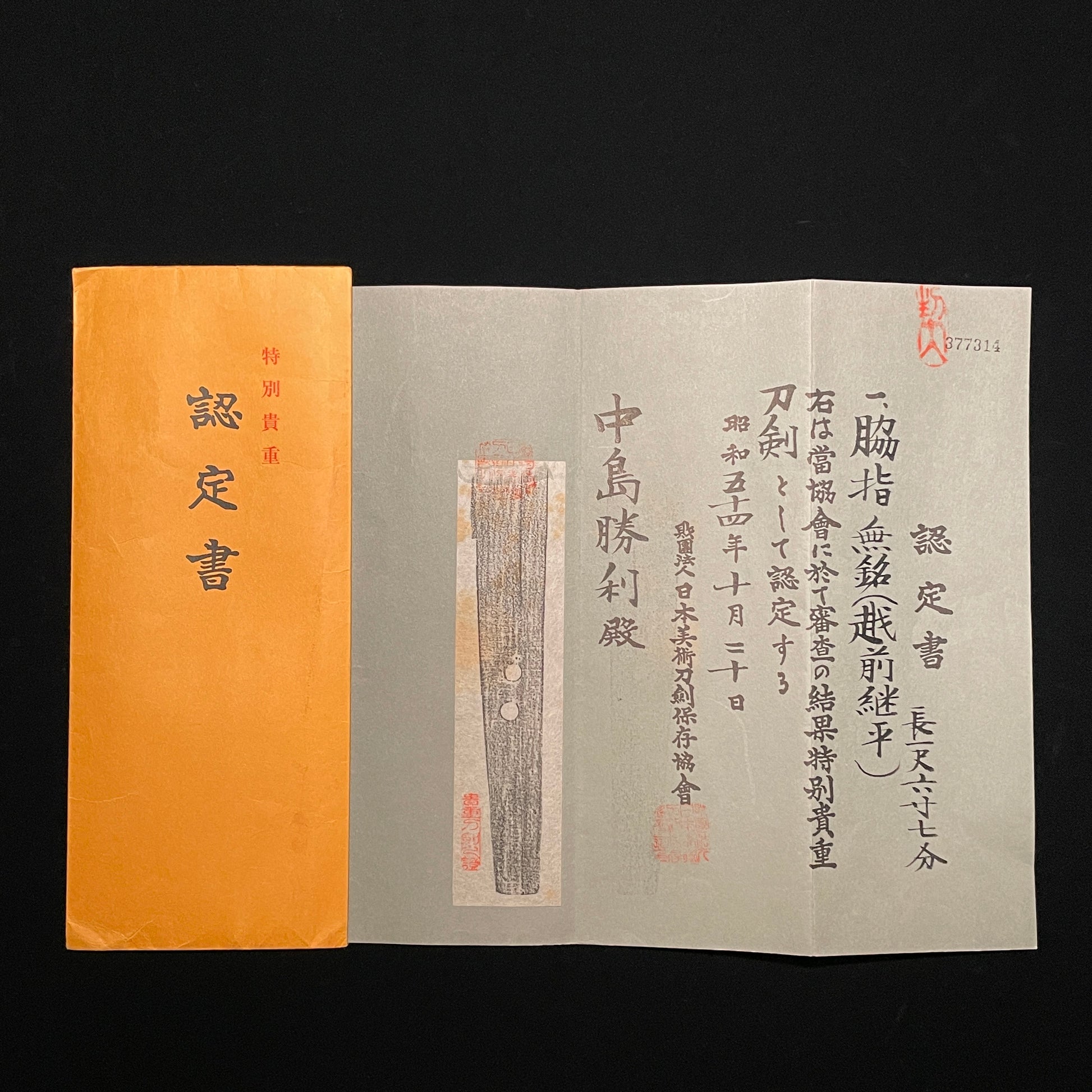 AYASUGIHADA 綾杉肌, Oohadamono 大肌物 WAKIZASHI, 越前継平 Echizen Tsuguhira