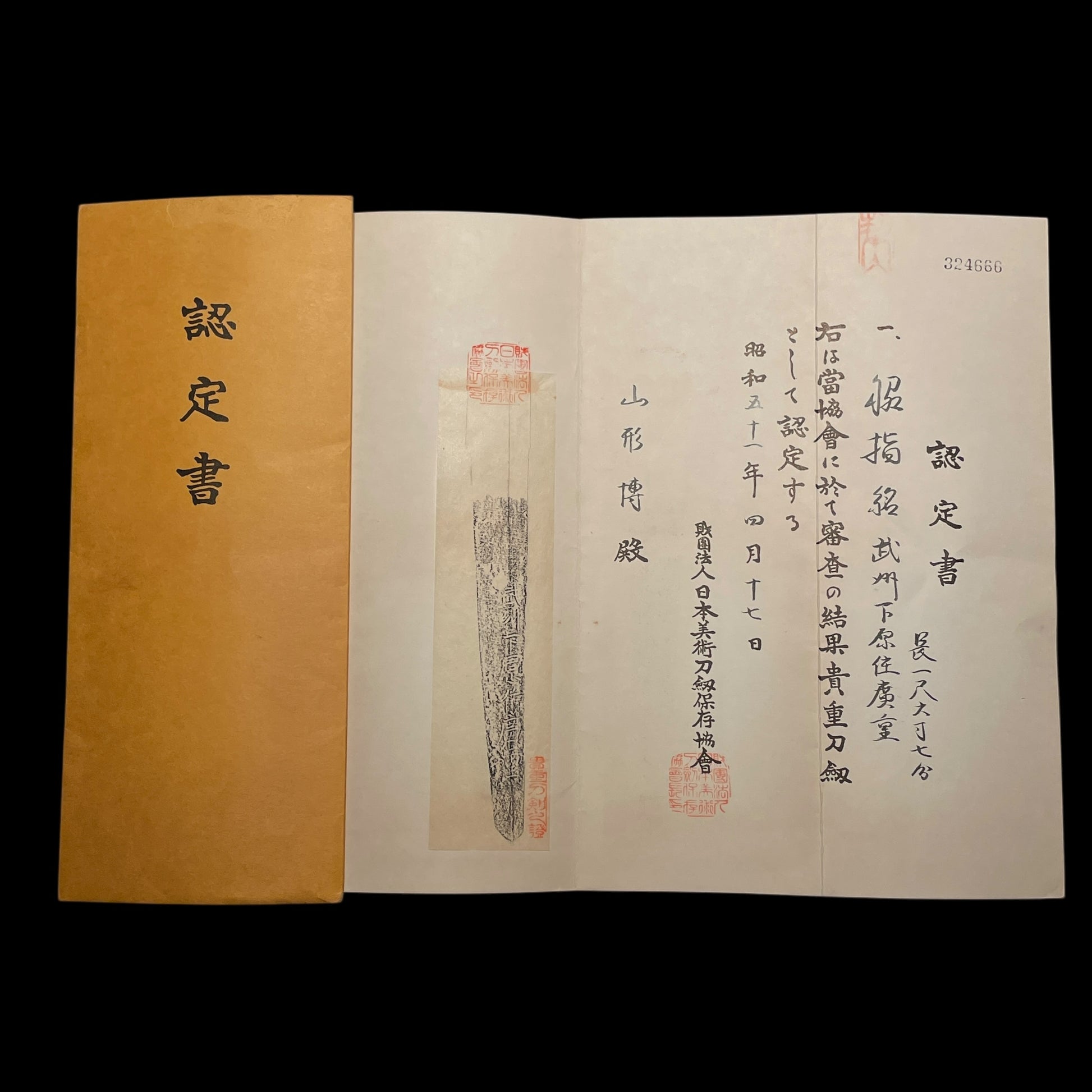 Bushu Shitaharaju Hiroshige 武州下原住廣重 signed Long WAKIZASHI, NBTHK Certificate