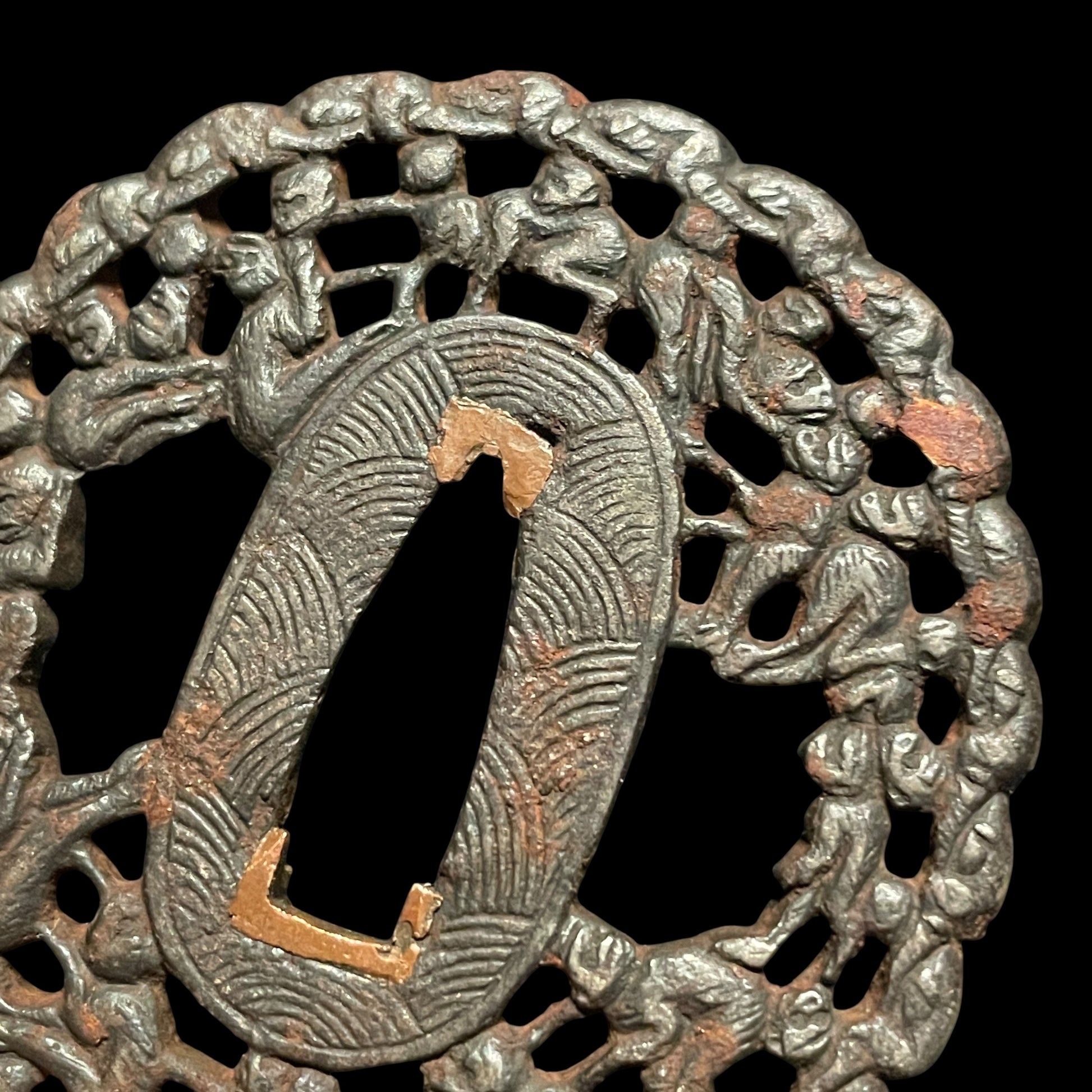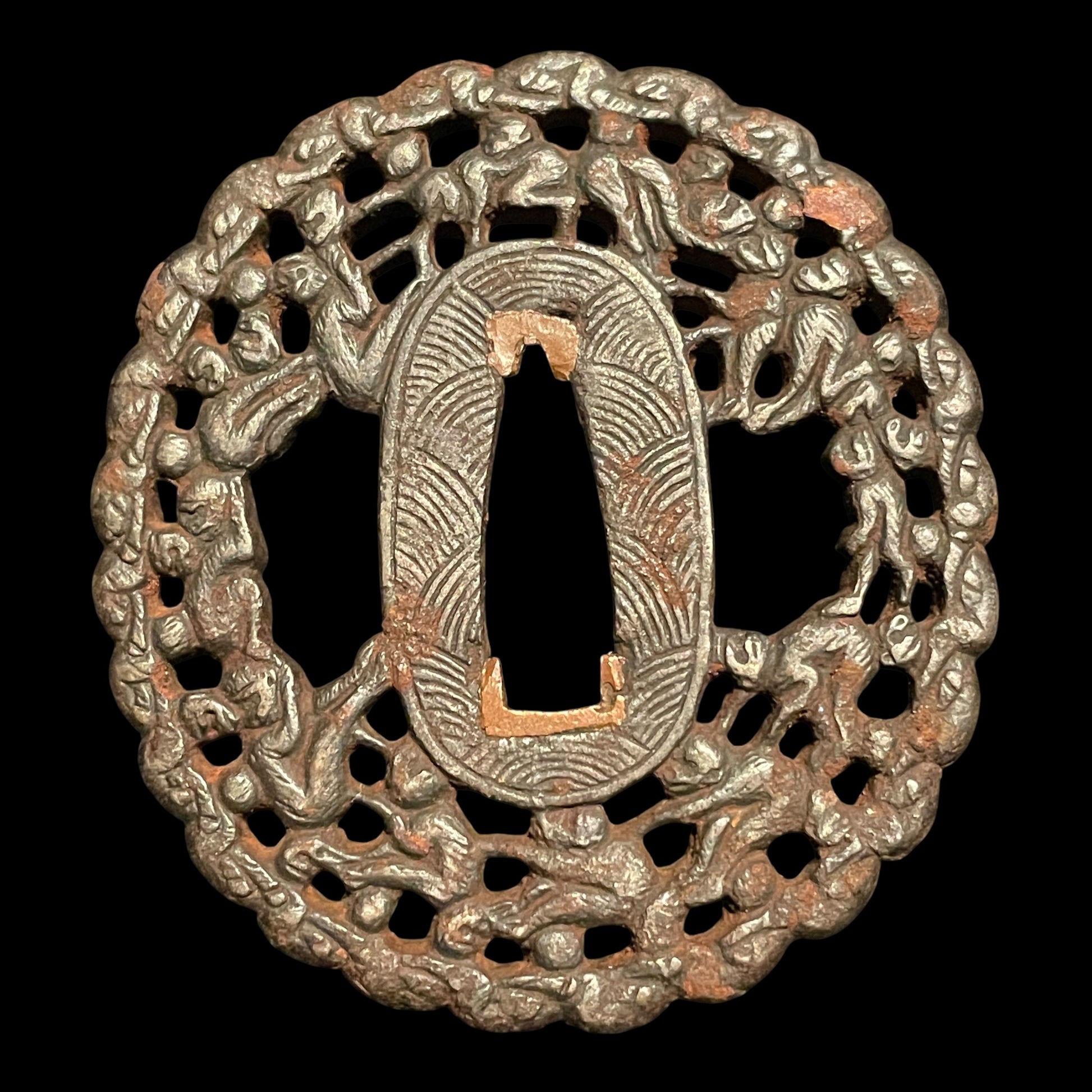 The Tsuba is a Nanban Style Tsuba with Senbikizaru (千匹猿), a depiction of many monkeys.