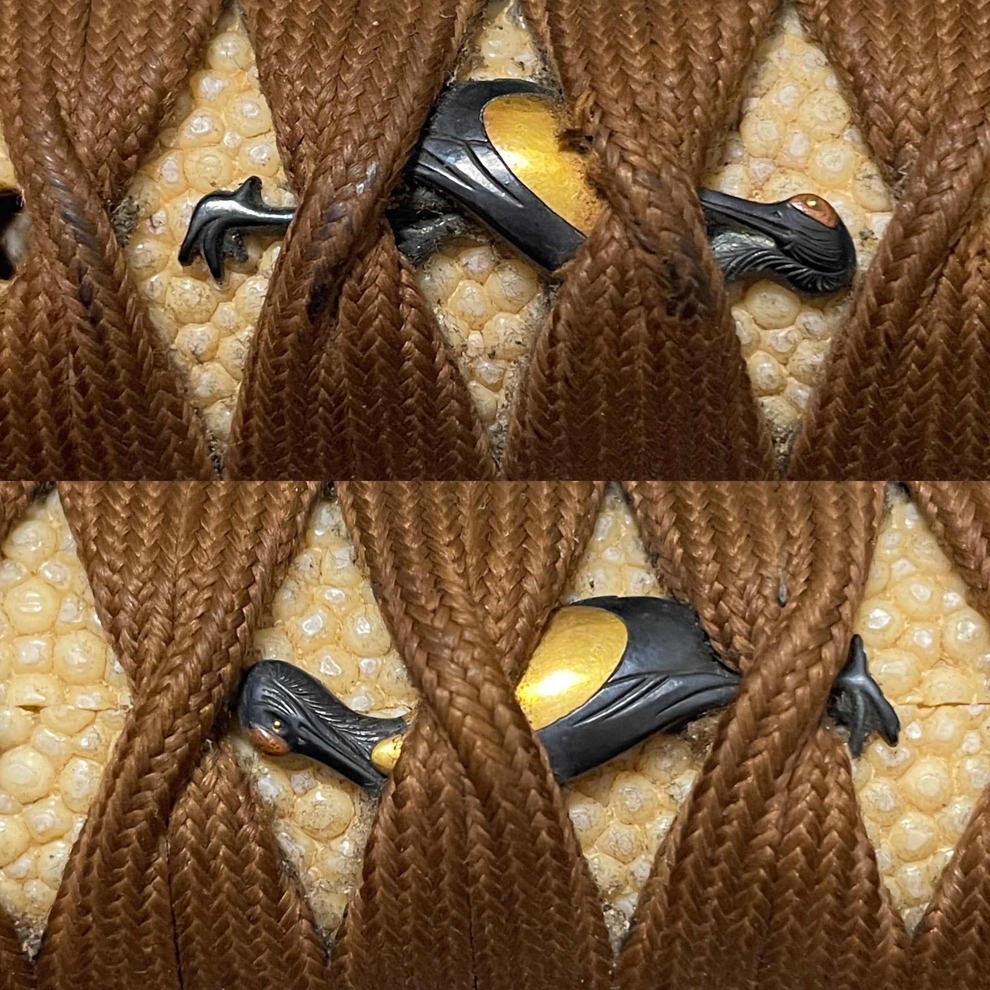 This is a very rare Fuchikashira and Menuki with a depiction of Cormorant Fishing (Ukai 鵜飼い).