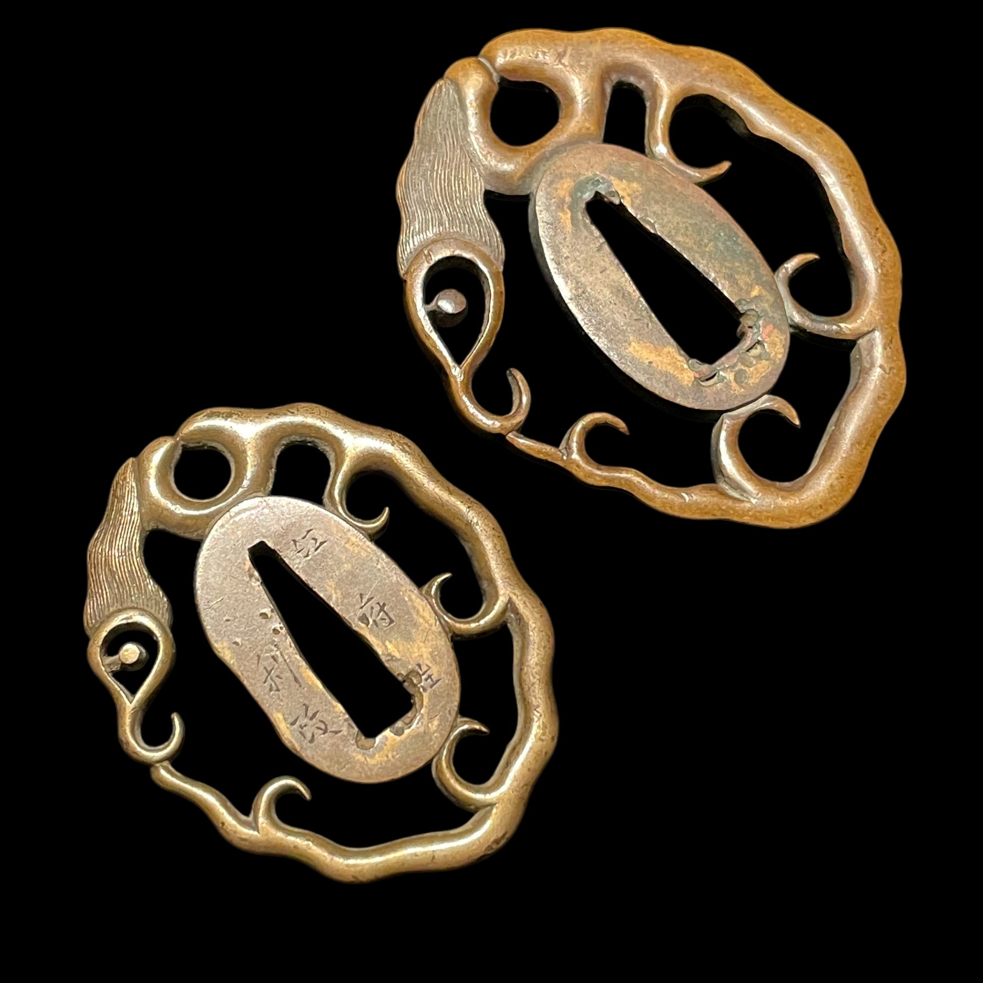 Brass Tsuba in horse mane style is signed, Kofuju Masatoshi(江府住利政).