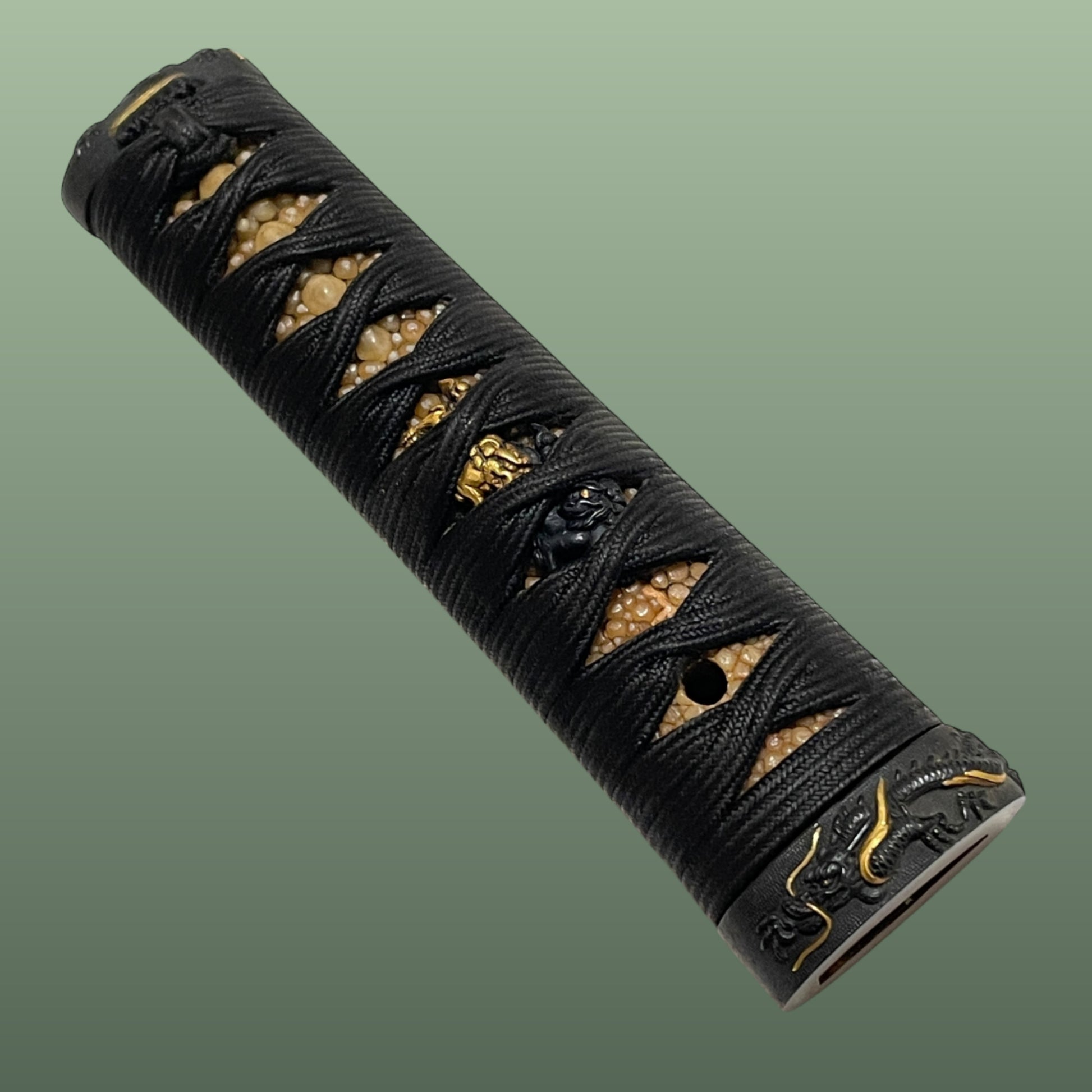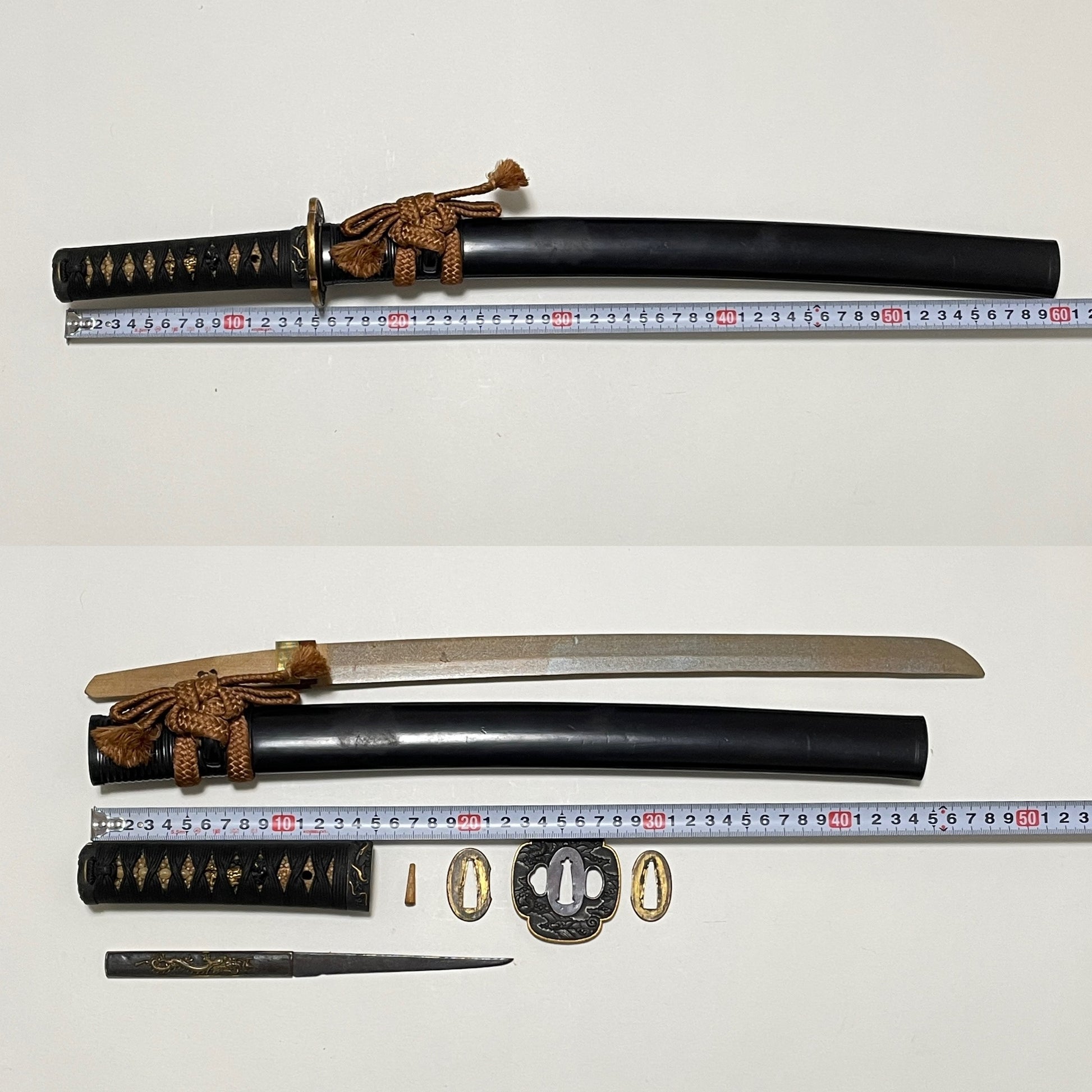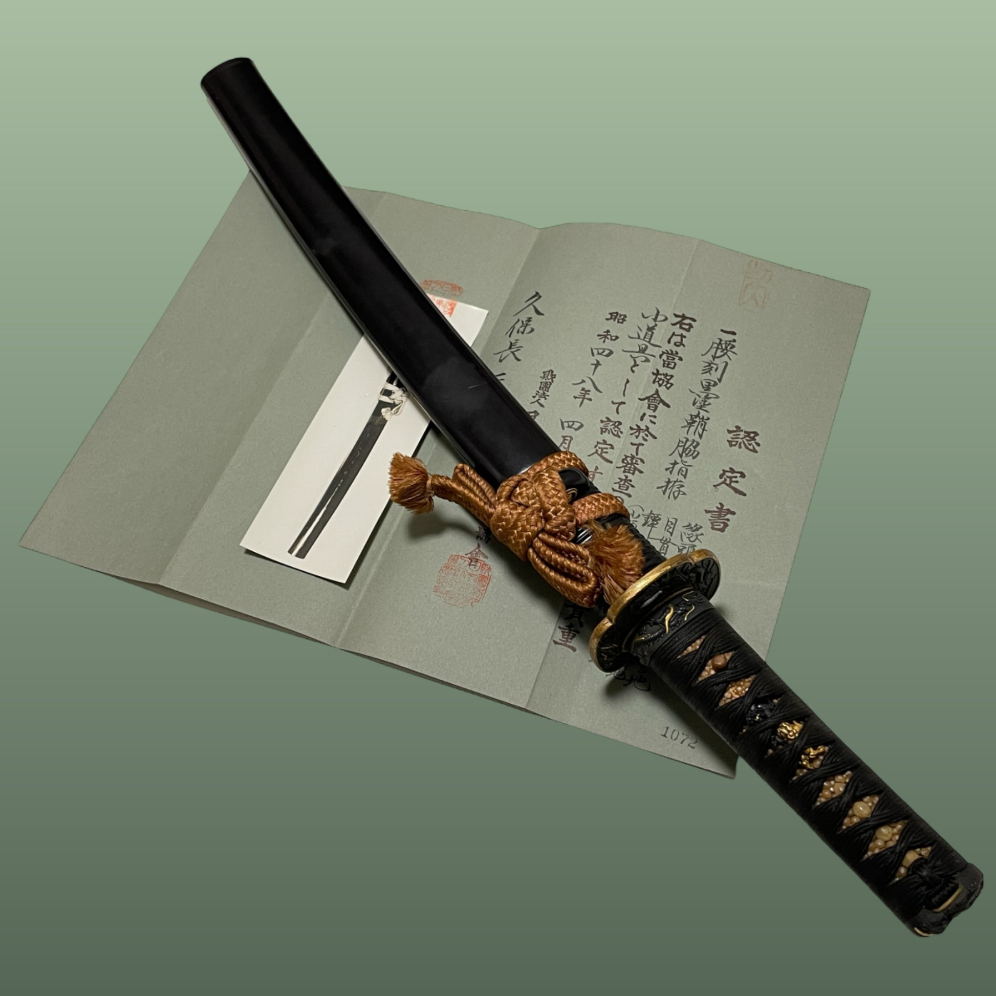 Dragon Fittings 龍一作 Koshirae For Wakizashi, 腰刻黒鞘脇指拵, Edo period, NBTHK Certificate