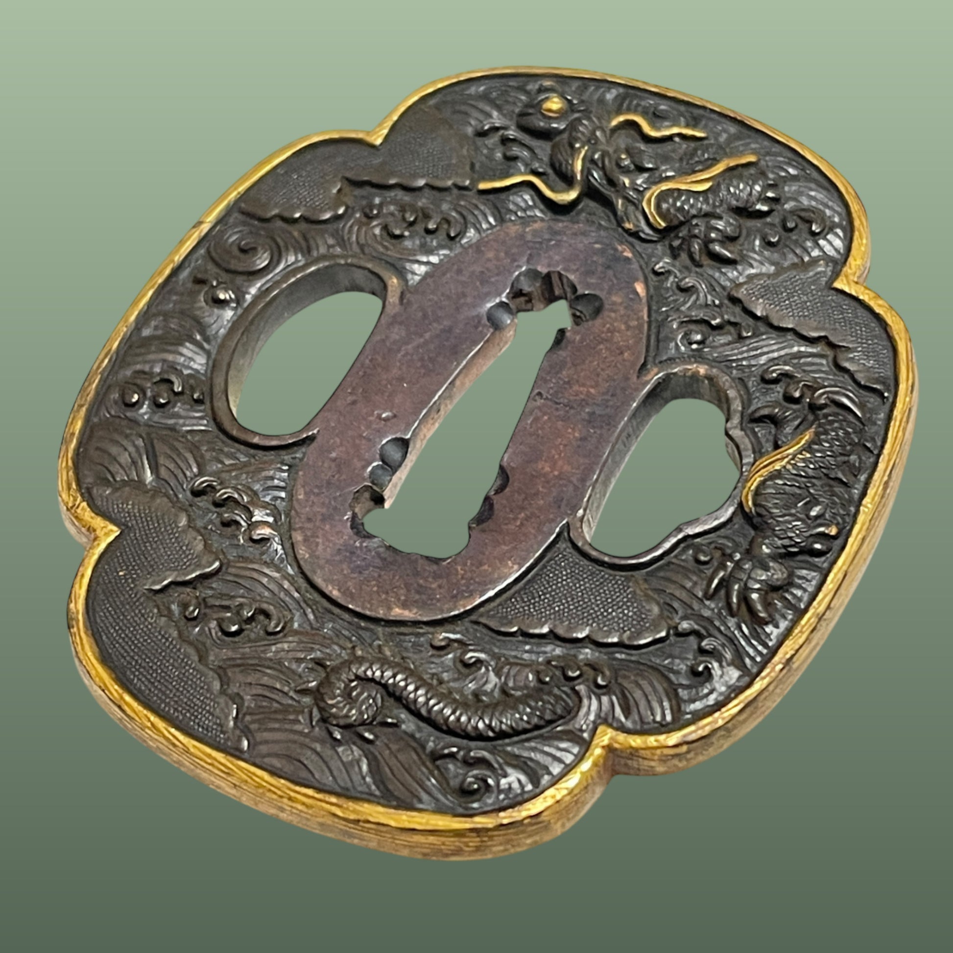 鍔 波龍図 山銅地 (Tsuba Namiryuzu Yamaganeji)