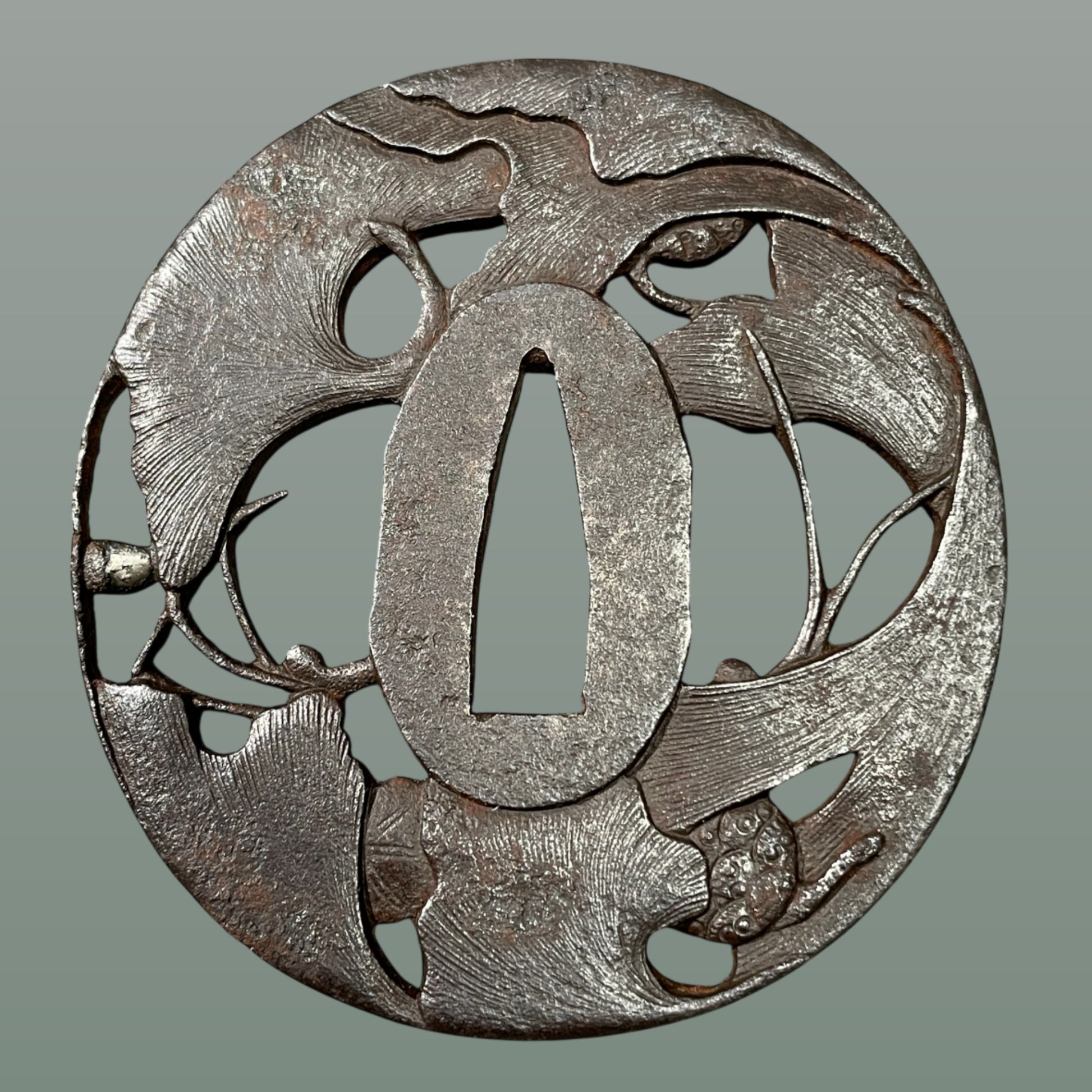 Ginkgo Autumn leaves, Fukiyose Sukashi Icho TSUBA(吹寄透銀杏鍔),with BOX
