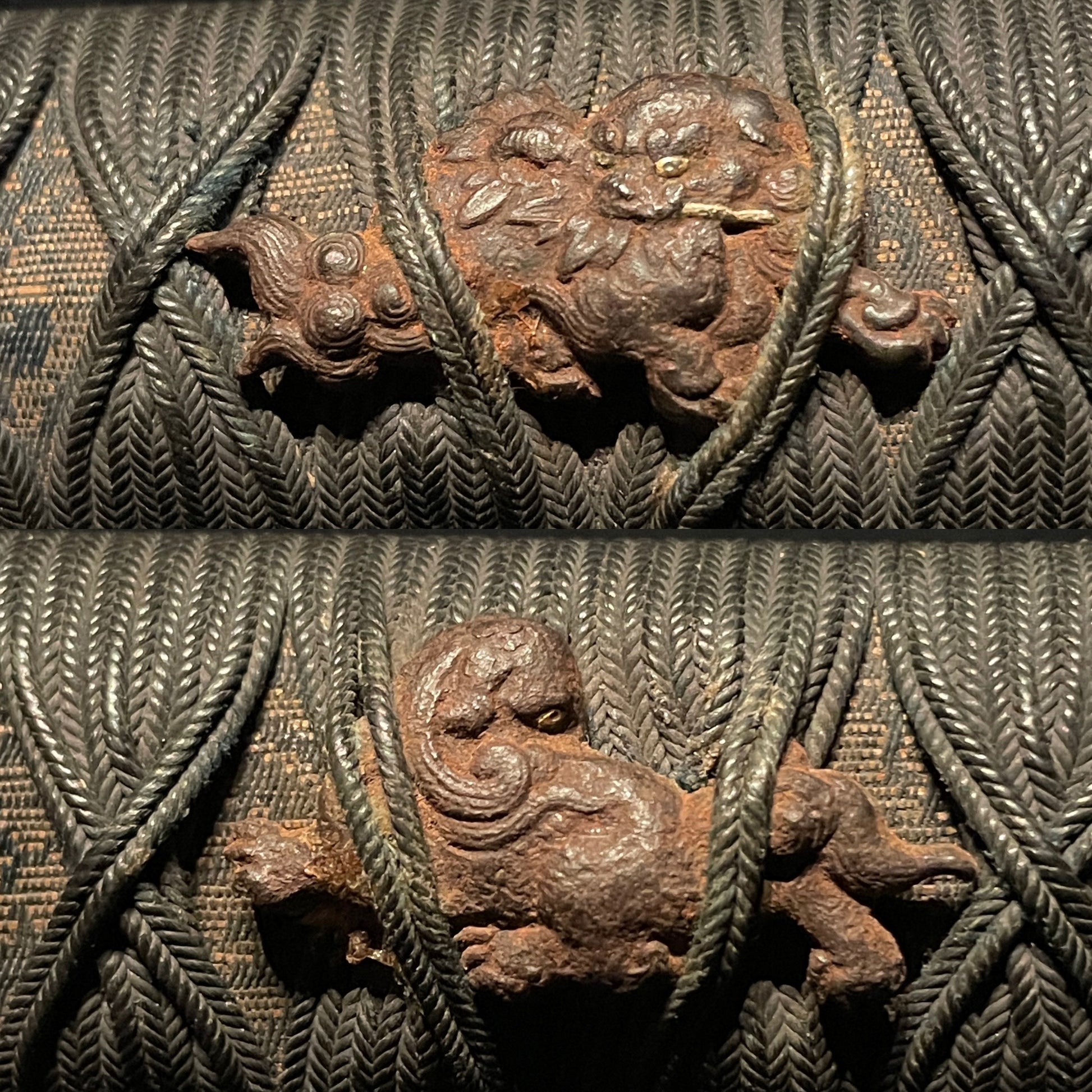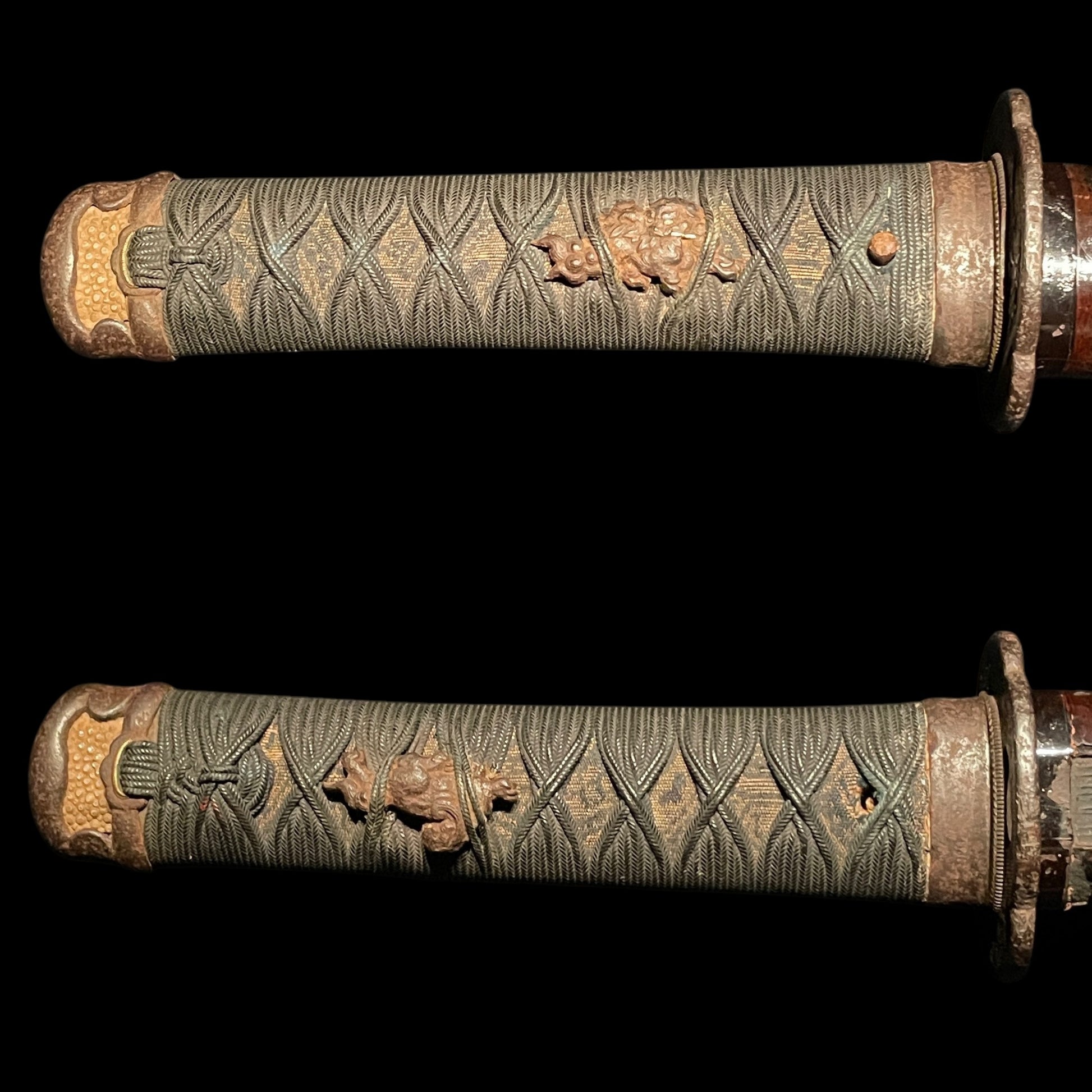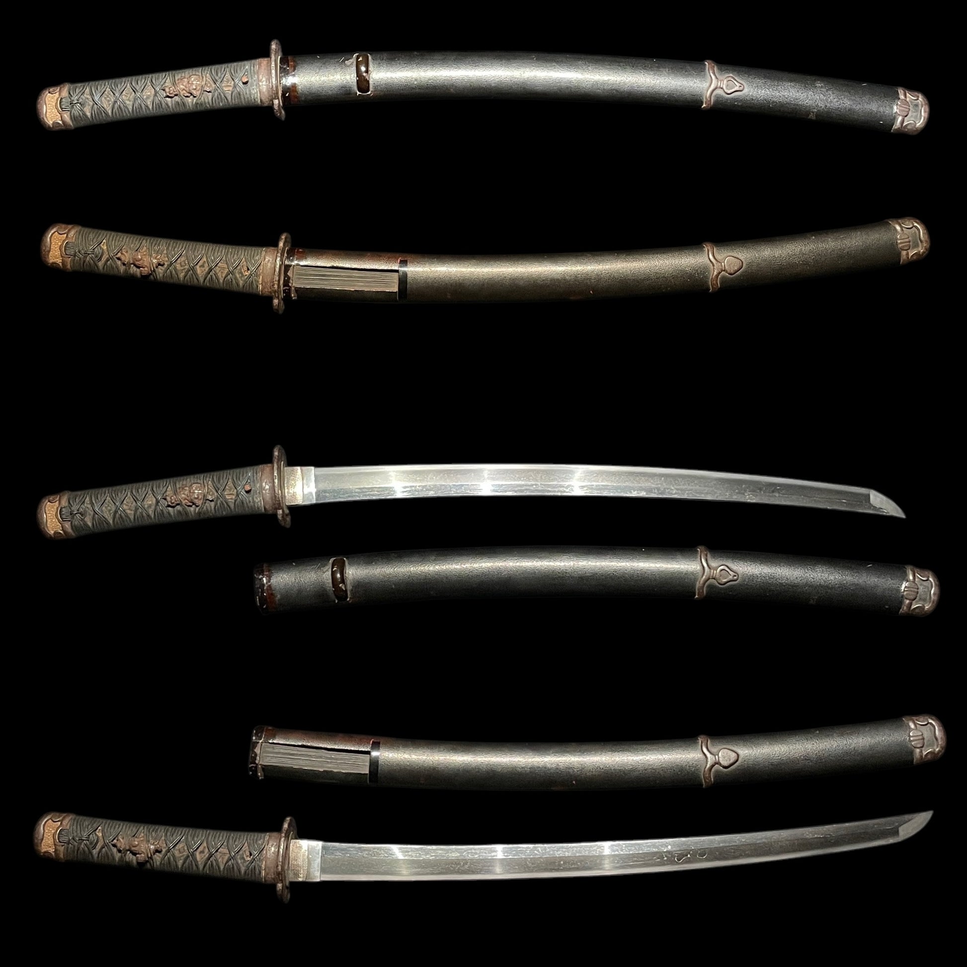 Handachi Koshirae 半太刀拵鉄一作金具 WAKIZASHI, Iron Large Menuki, Munehisa 宗久 signed