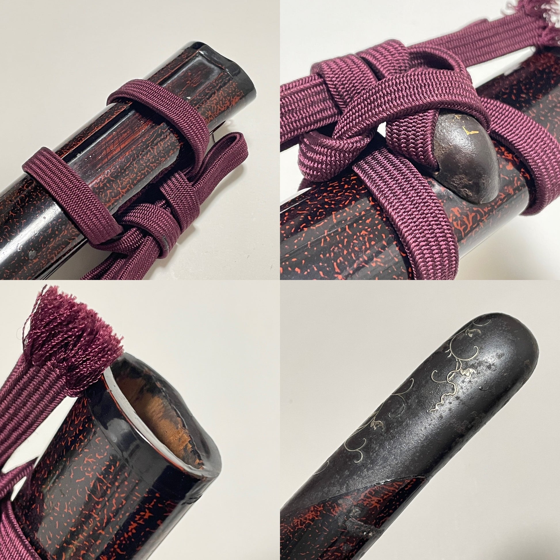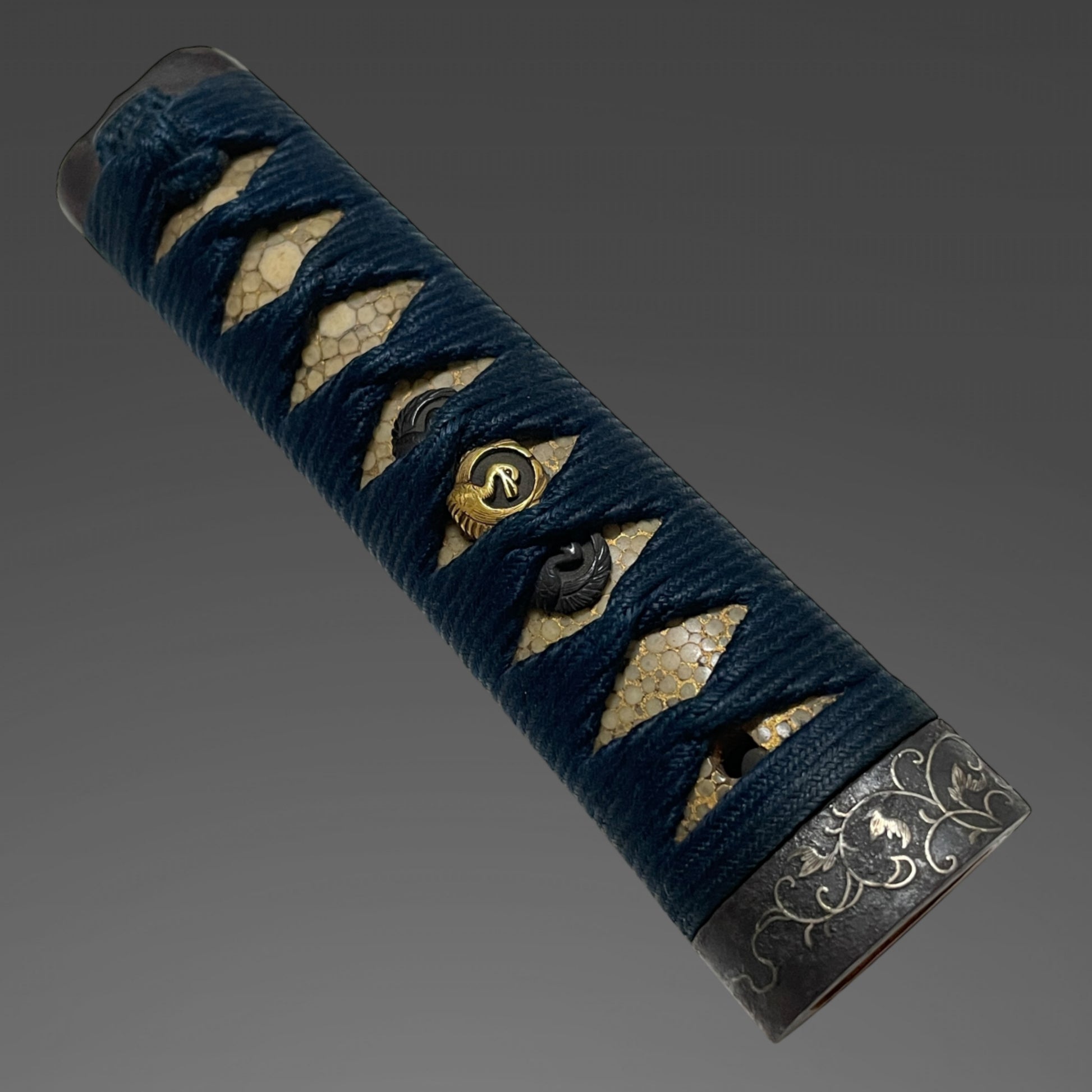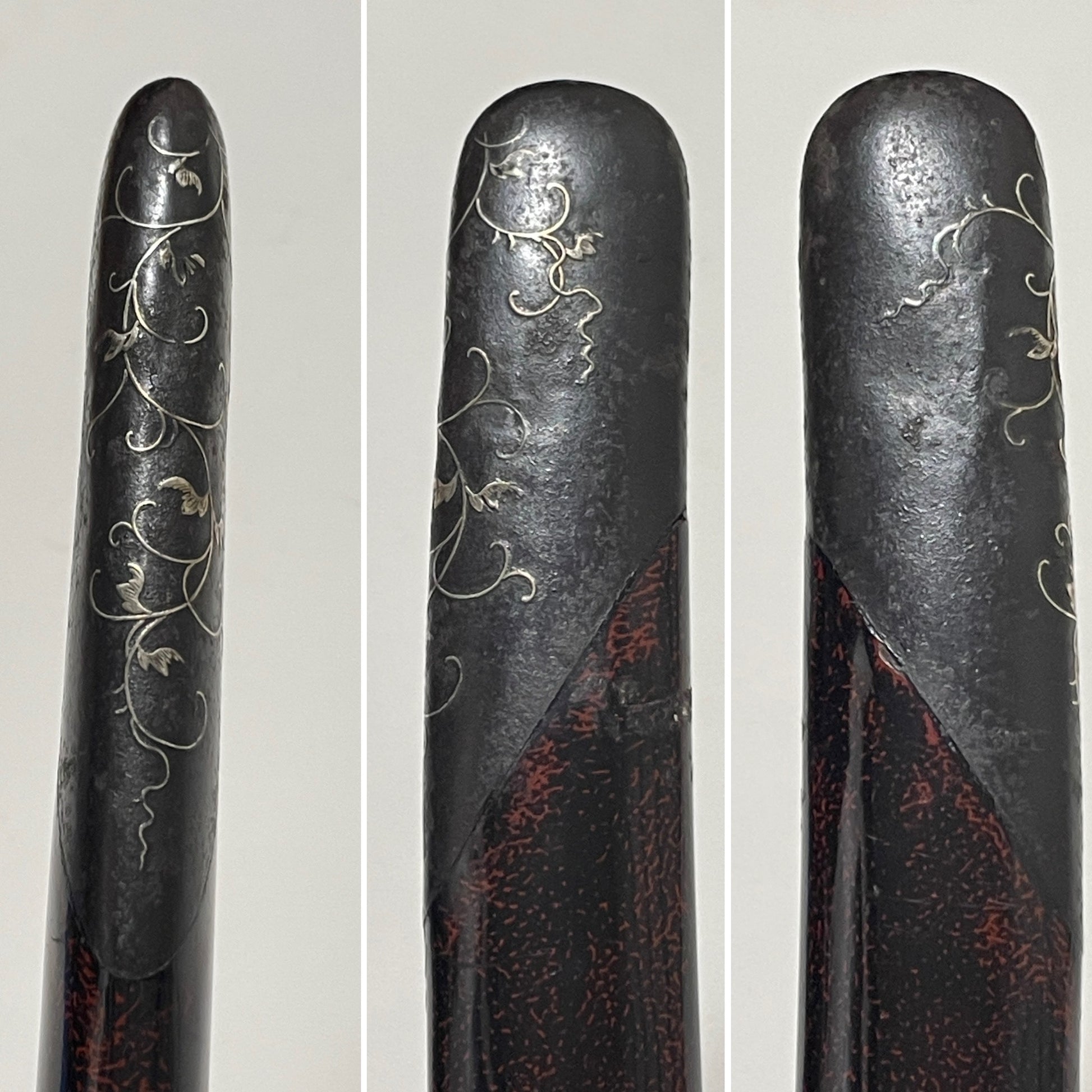 The Fuchikashira sword features a silver inlay depicting ivy plants.