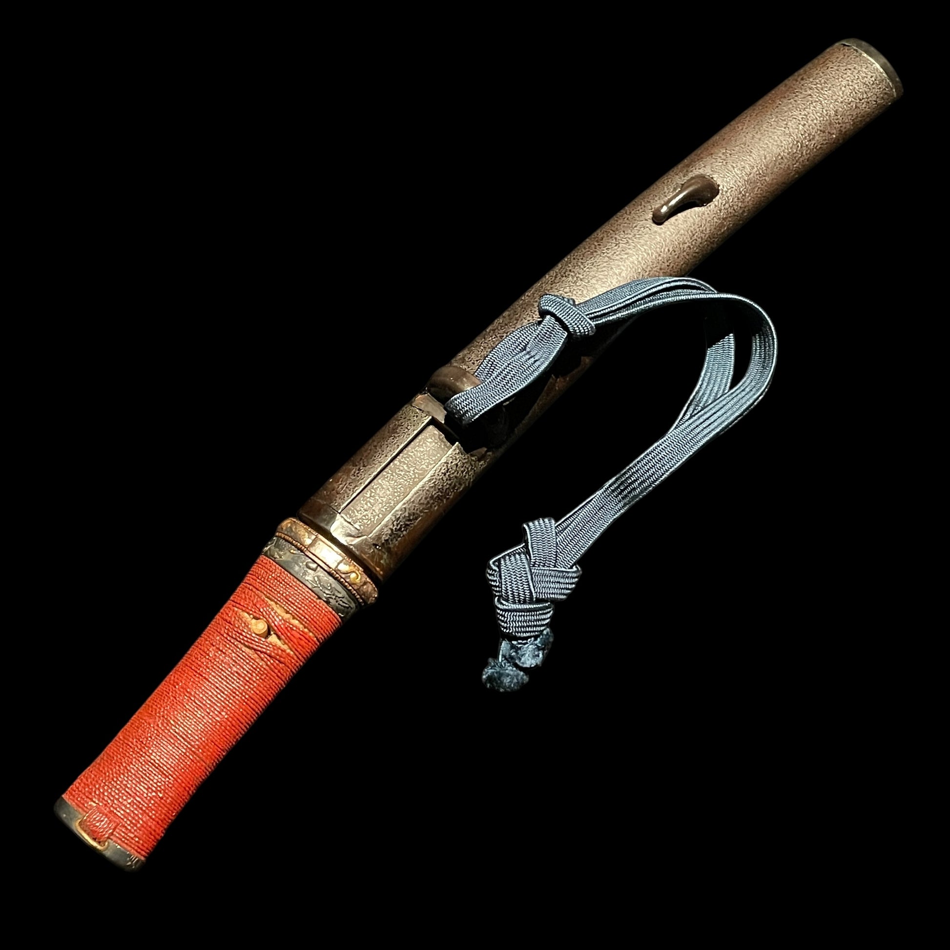 Hirazukuri Red TANTO, Yodomeisho 淀名所 Fuchikashira, with Shirasaya
