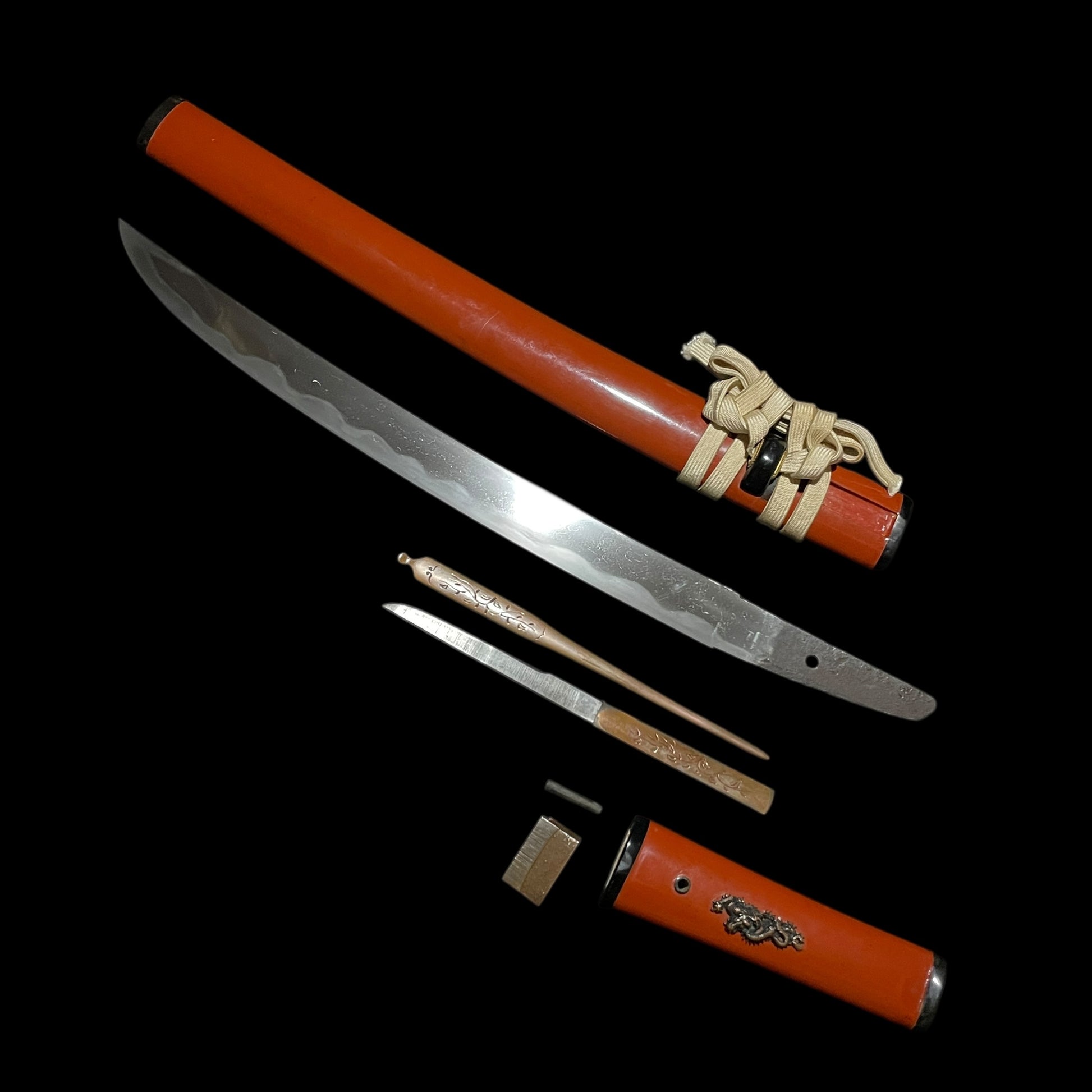 Hirazukuri Sunnobi TANTO 平造寸延短刀, 氏房 Ujifusa signed, with Kozuka Kogai