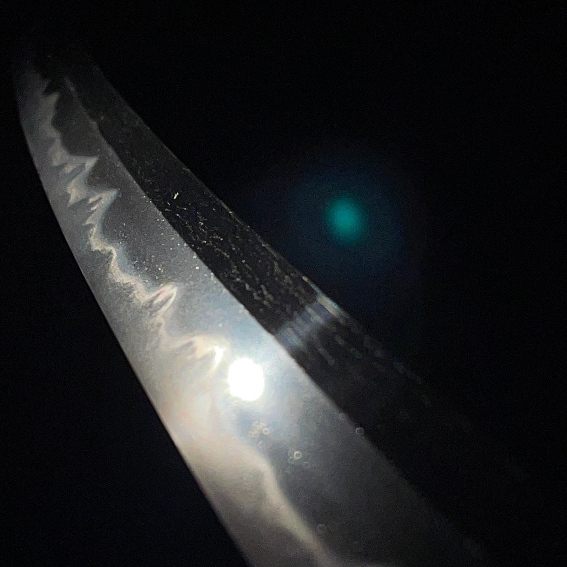 The Scabbard has a large Kojiri on the tip, and the Tsuba has an Aoi (葵) motif.