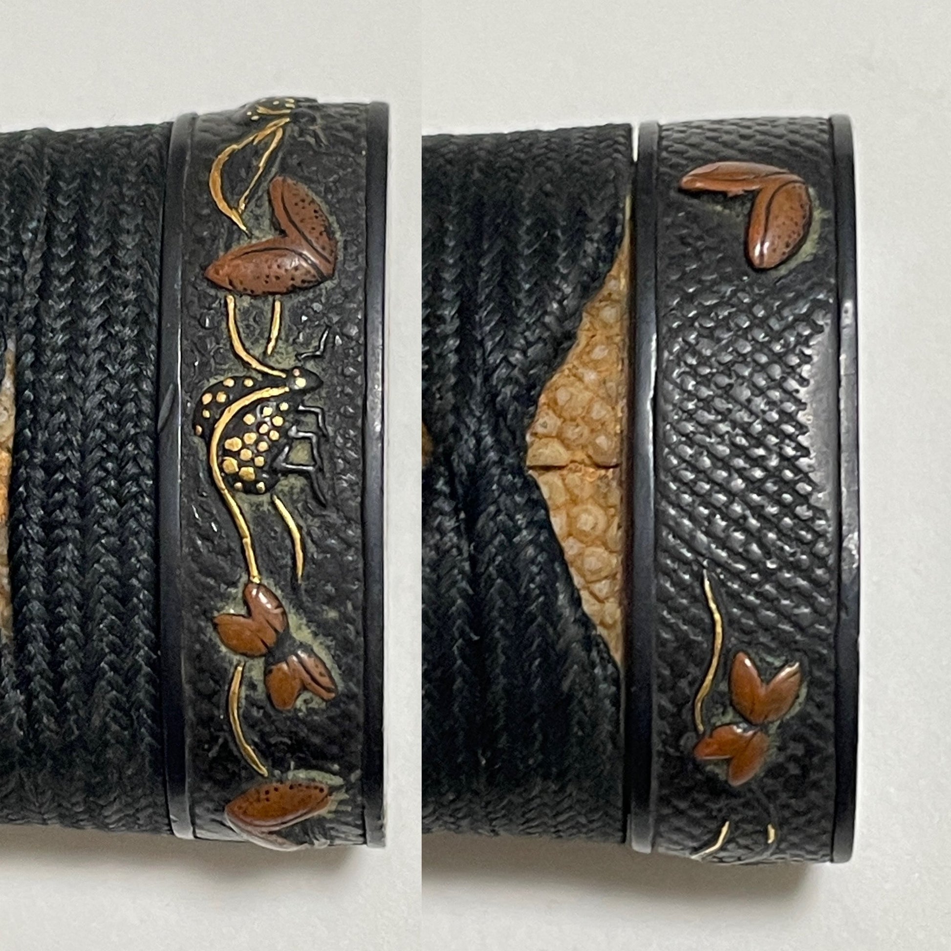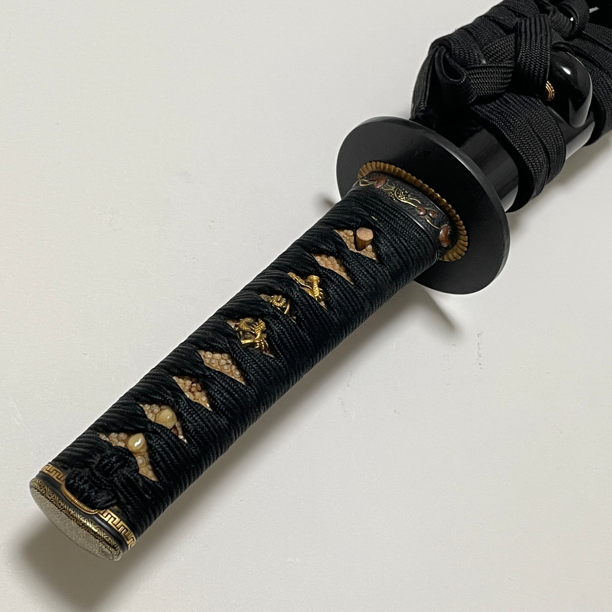 Hou 伯 signed WAKIZASHI, Raimon 雷紋 Kashira, Fuemaki-Zaya 笛巻鞘, Edo period