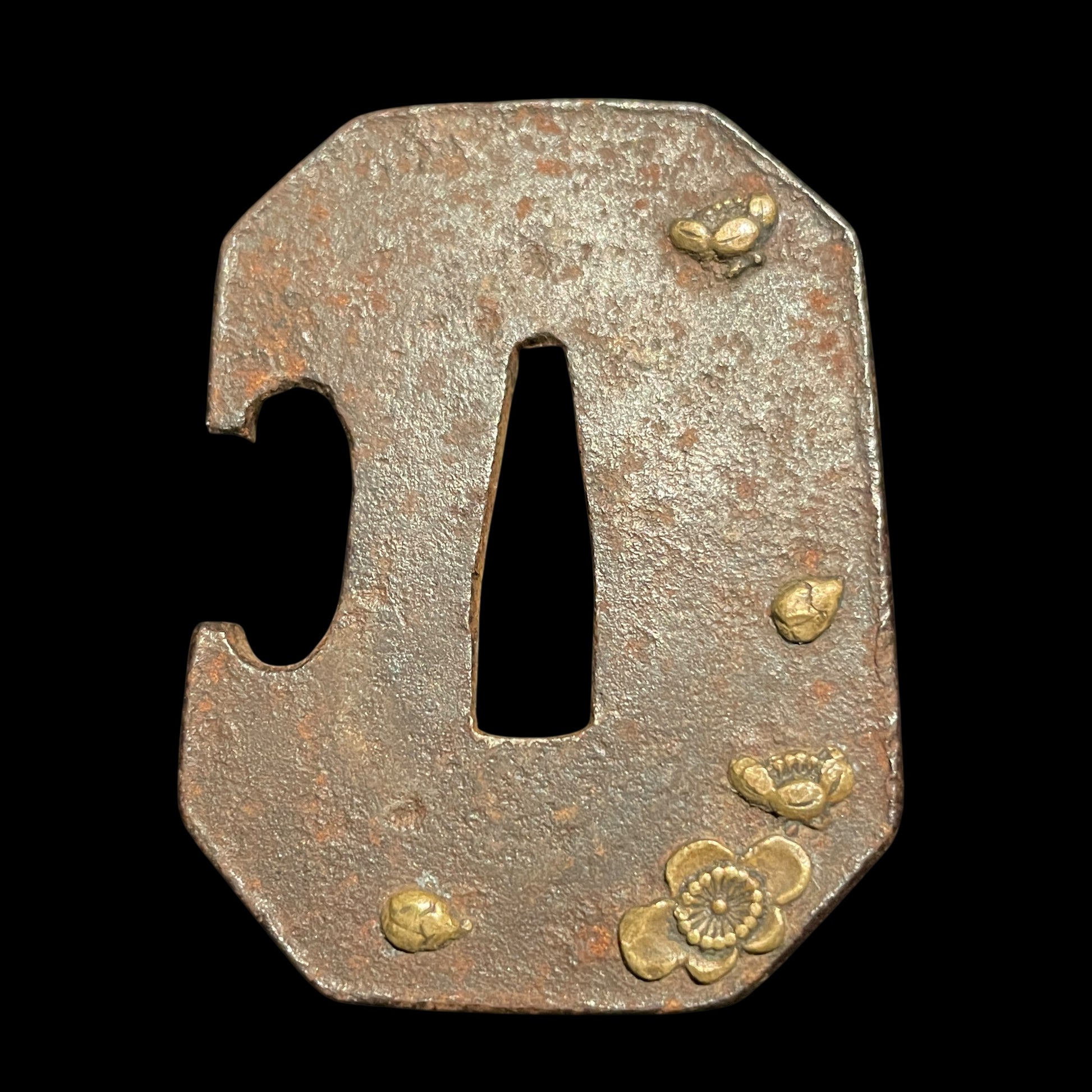 Kakinagashi-Hi 掻き流し樋 Short WAKIZASHI, Plum tsuba and Waterfowl Kozuka