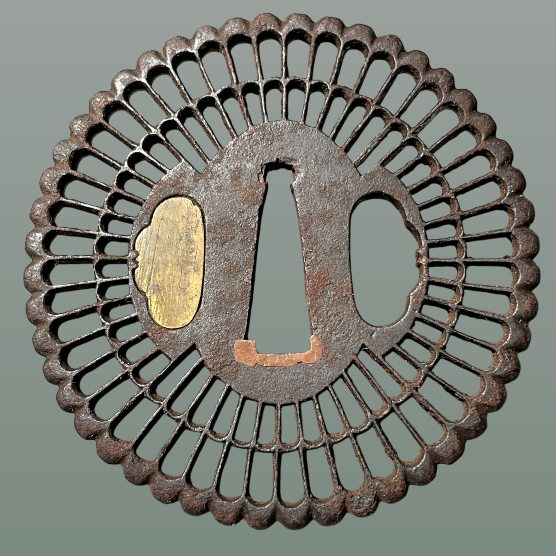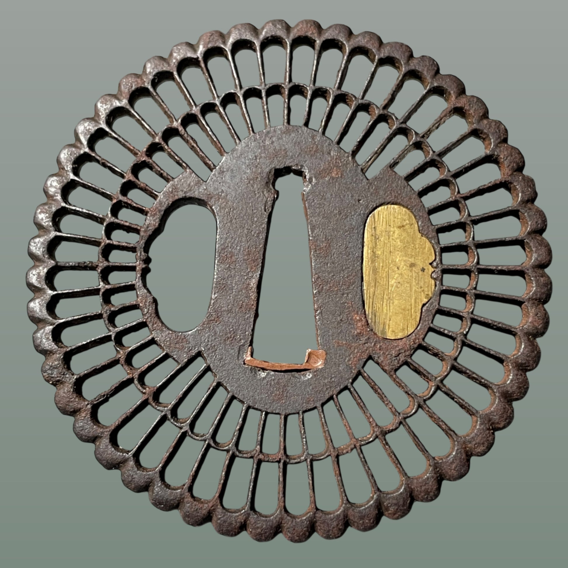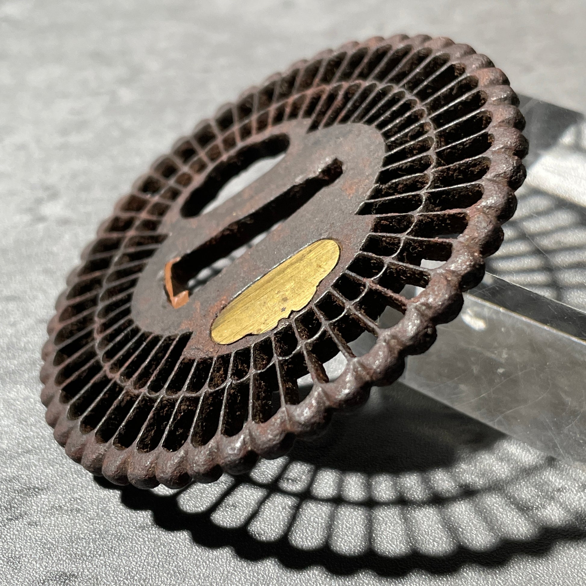 Kikka Sukashi(菊花透), Chrysanthemum TSUBA, Iron back, Edo period, with BOX