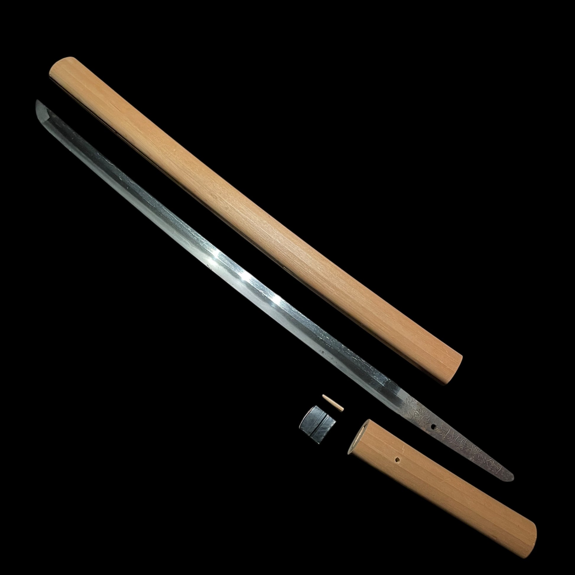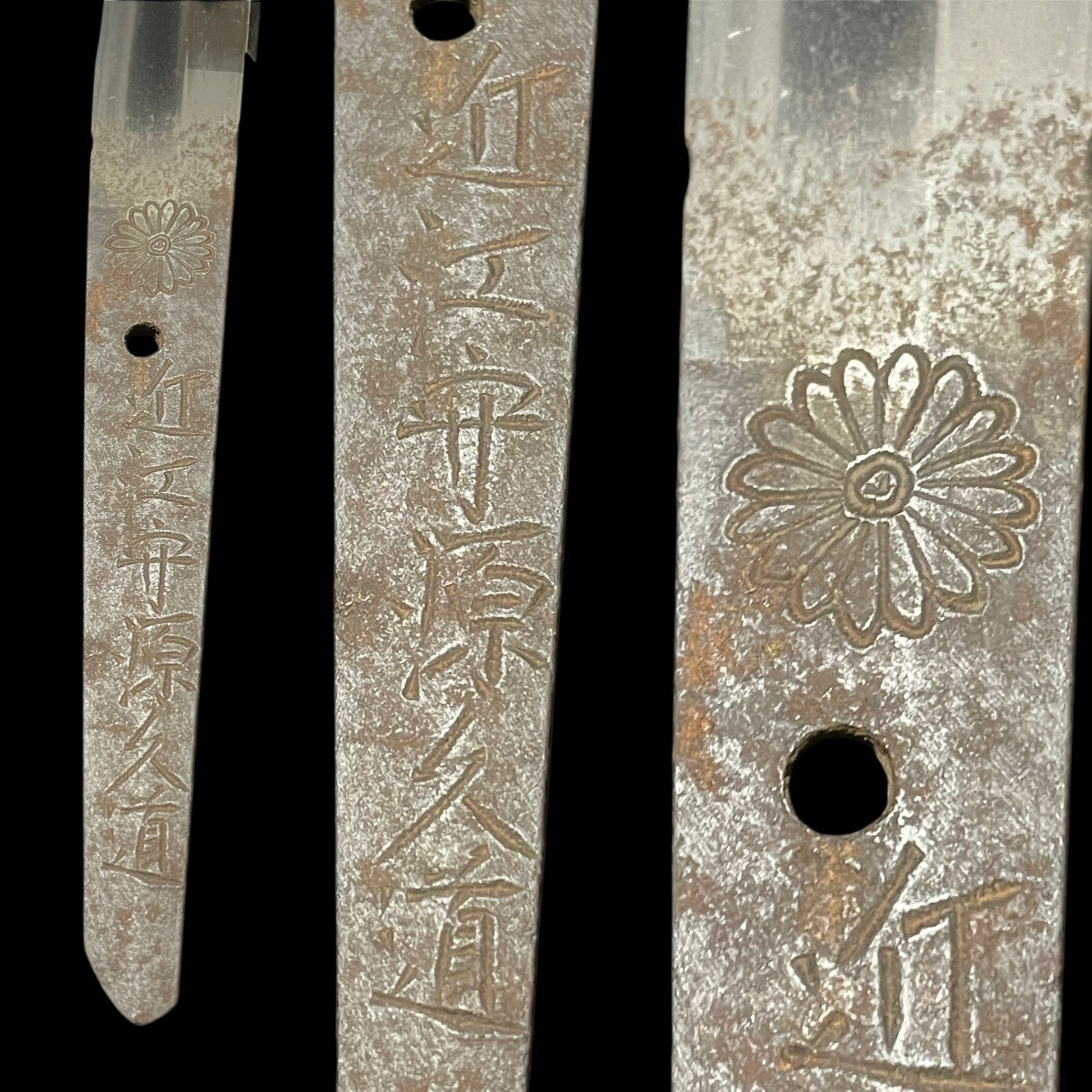 KIKUMON 菊紋 Chrysanthemum crest Long WAKIZASHI, Ominokami Hisamichi 近江守久道 signed