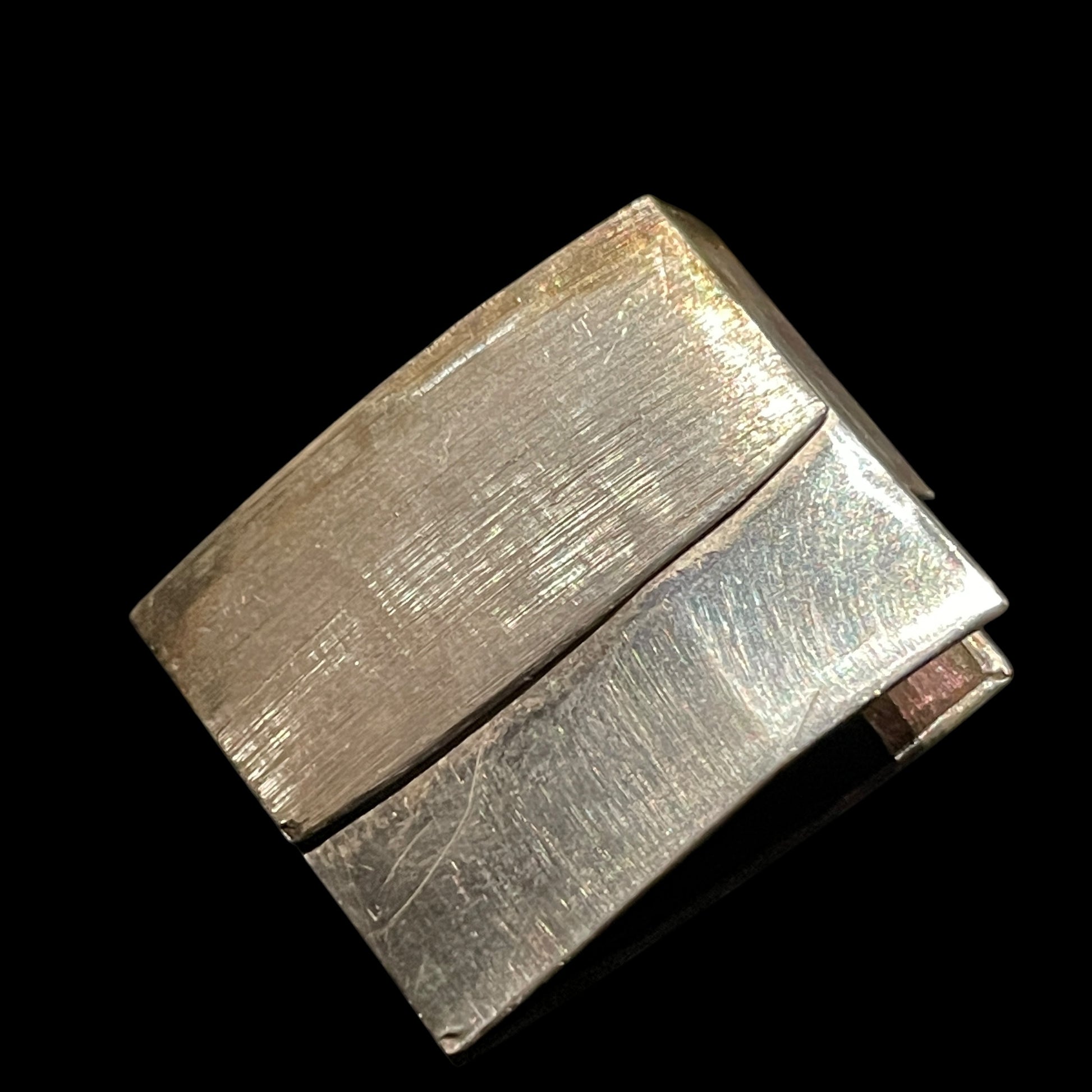 This is a cut scar that is thought to have been made when the blade was used to defend against an opponent's sword attack in battle.