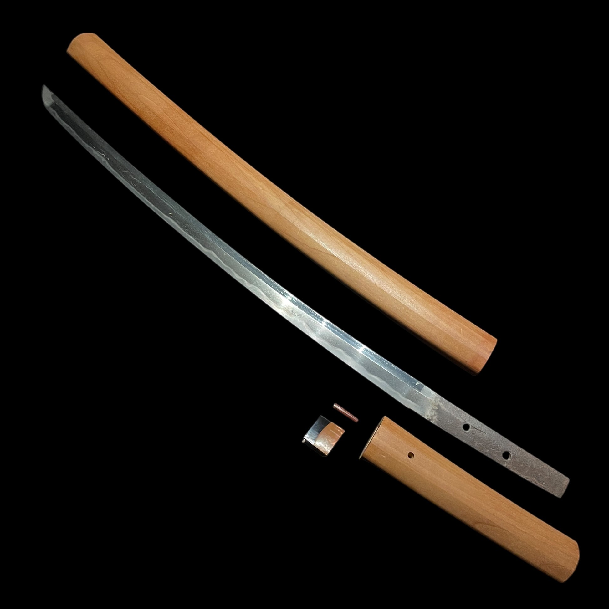 Midare-Hamon Wakizashi in Shirasaya, Edo period mumei, Shakudo and Copper Habaki