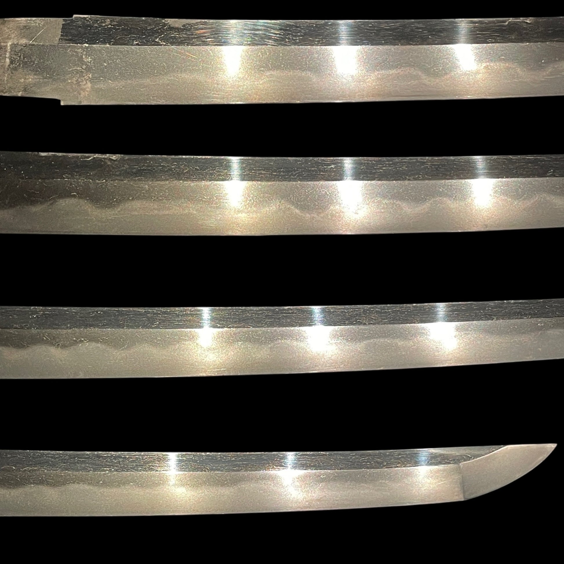 Monju Kaneshige 文珠金重 signed WAKIZASHI, Oogunome-Hamon 大互目刃文, Edo period