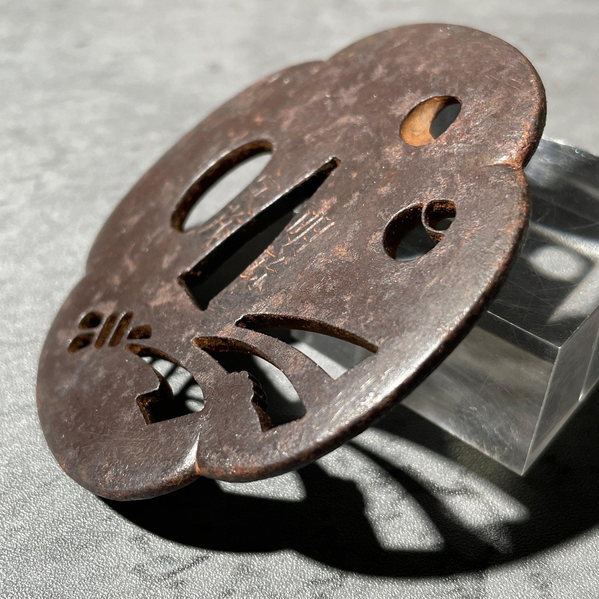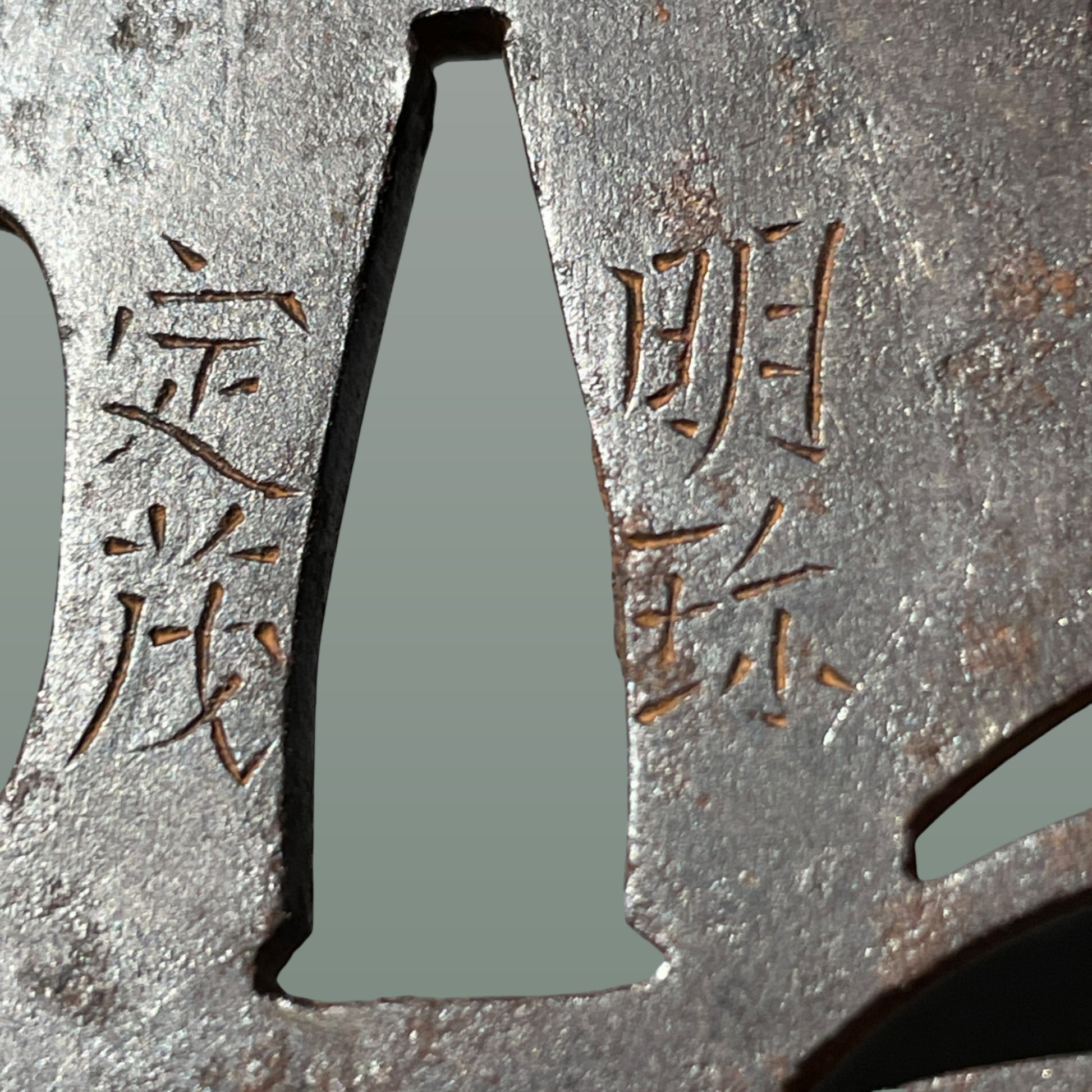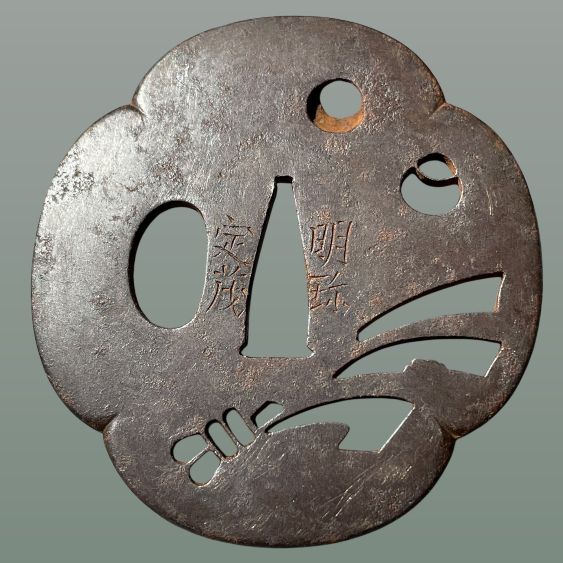 Myochin Sadashige 明珍定茂 signed TSUBA, Tabane Noshi 束熨斗, Iron back, Edo period