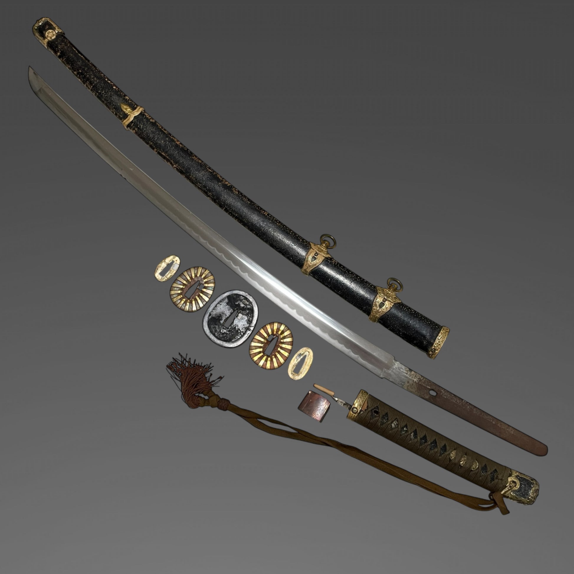 The Rayskin scabbard, tassel strap, and rising sun seppa are proof of its high quality.