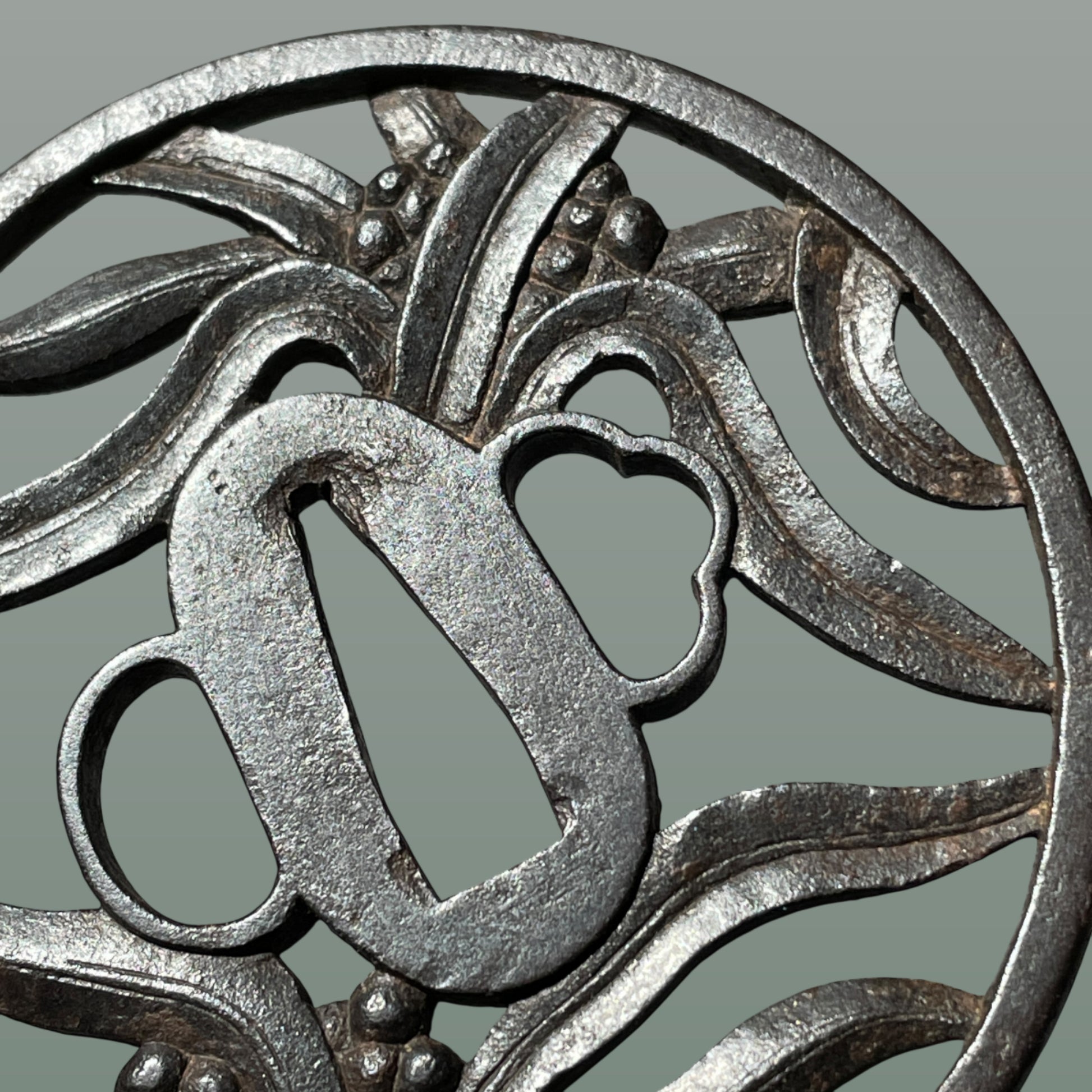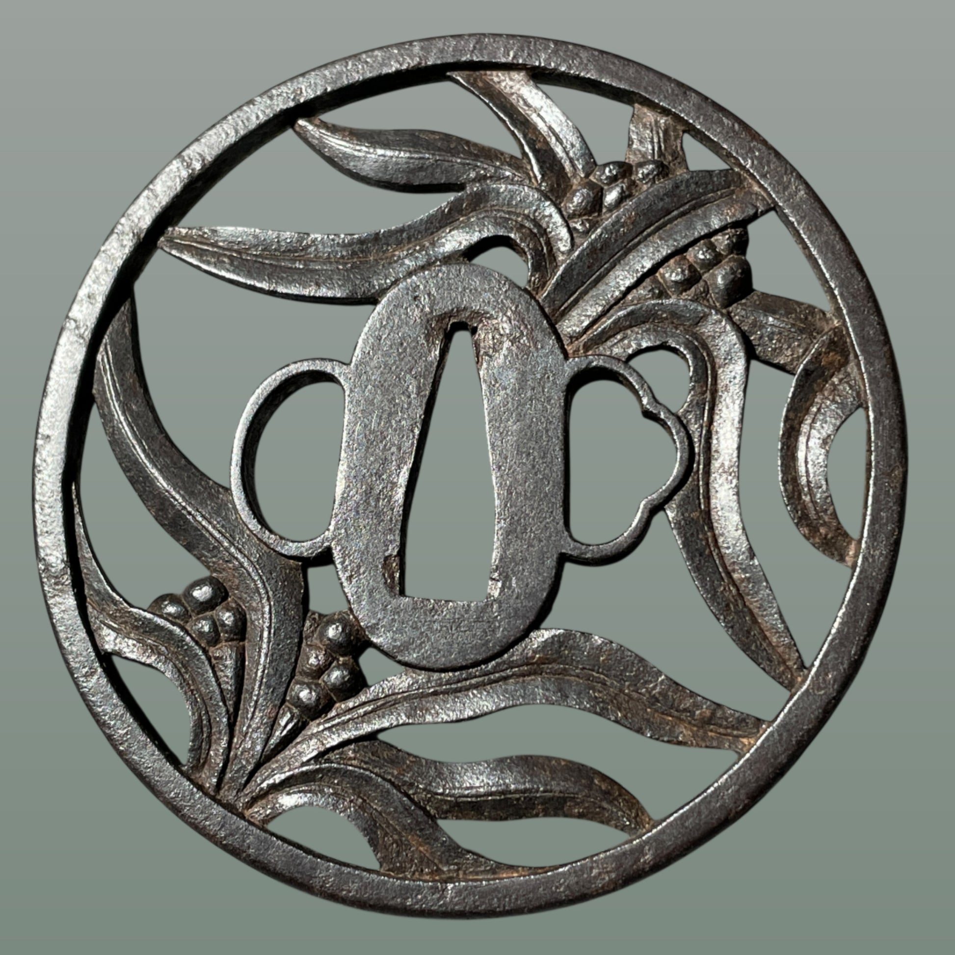 Omoto(万年青), Nippon lily Large TSUBA, Iron back, Edo period, with BOX