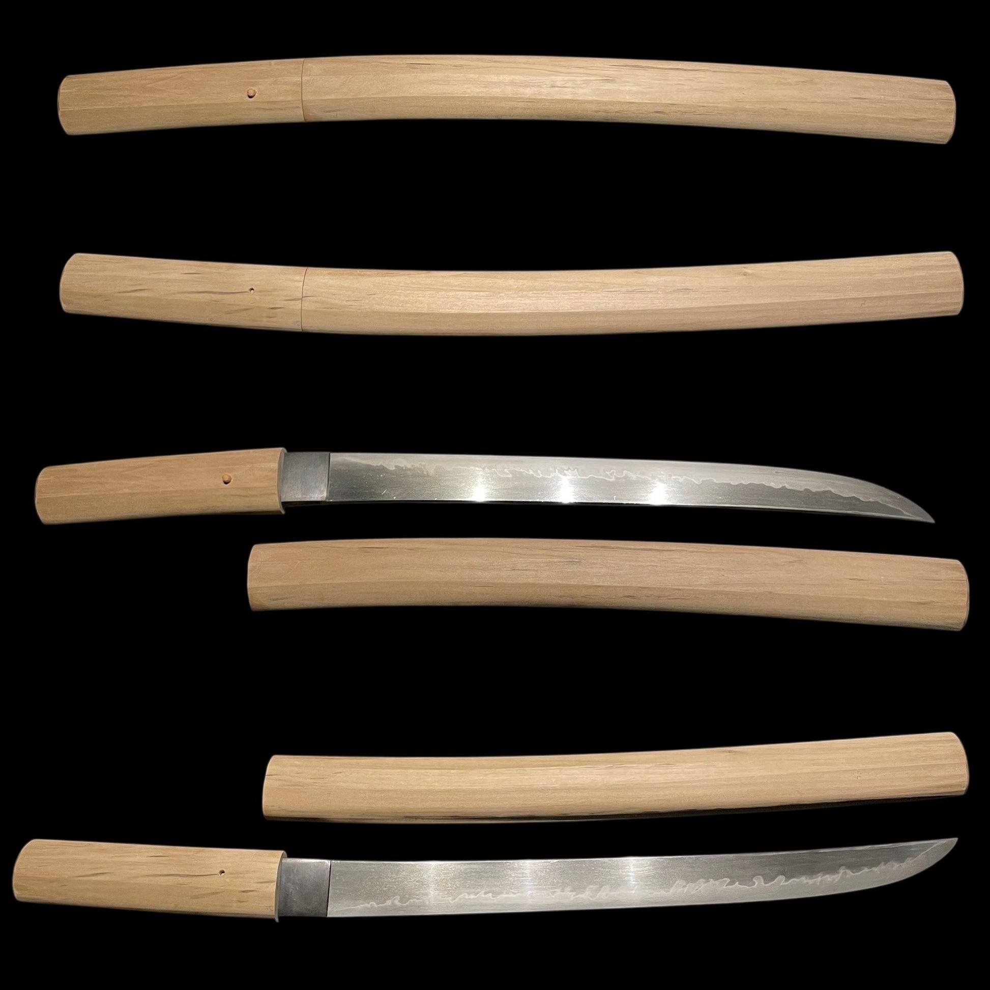 ONIBOCHO 鬼包丁 Hirazukuri Wakizashi, Very Wide Blade, Toranba 濤乱刃, Edo period