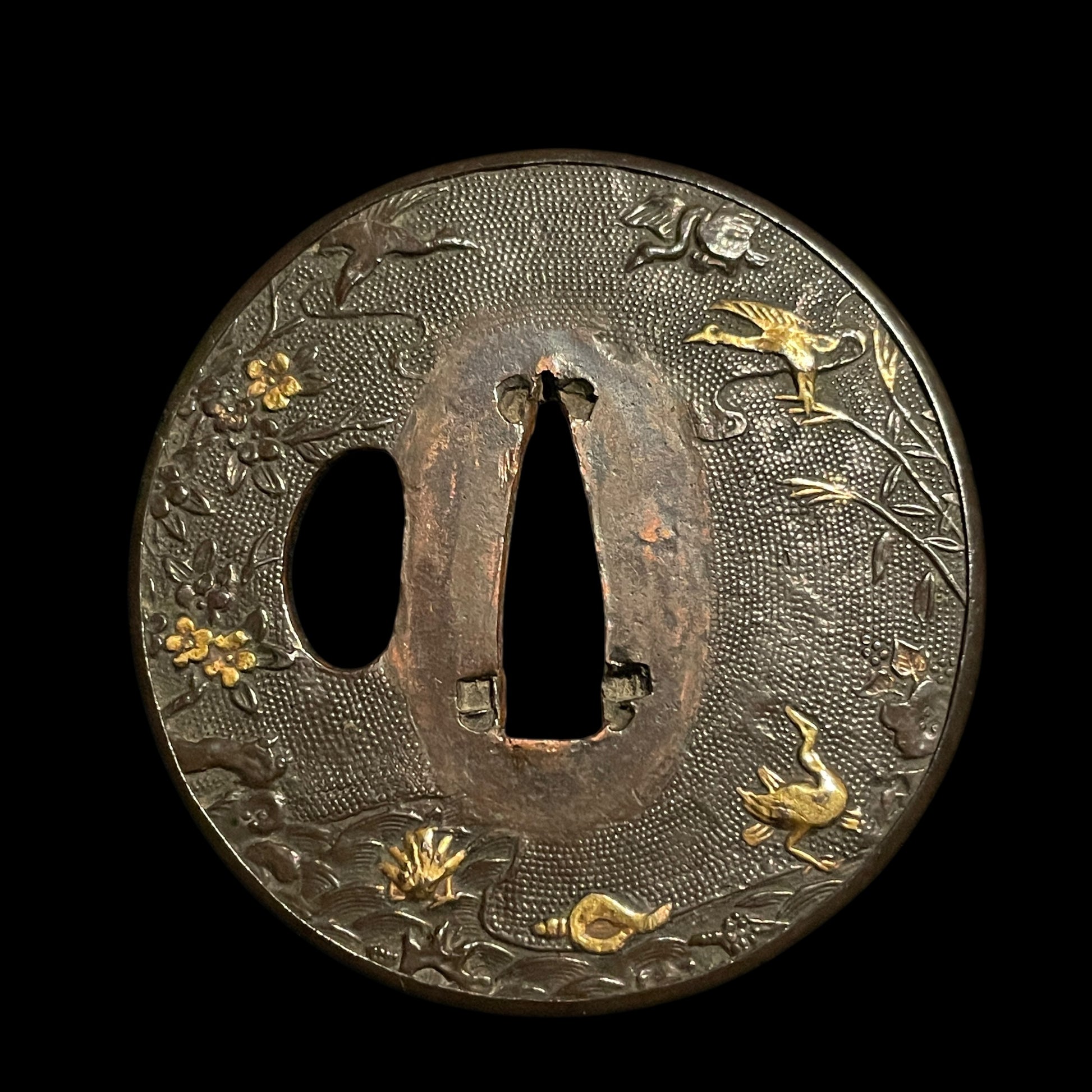 Gunome-Hamon, a fine Fuchikashira with pine needles.