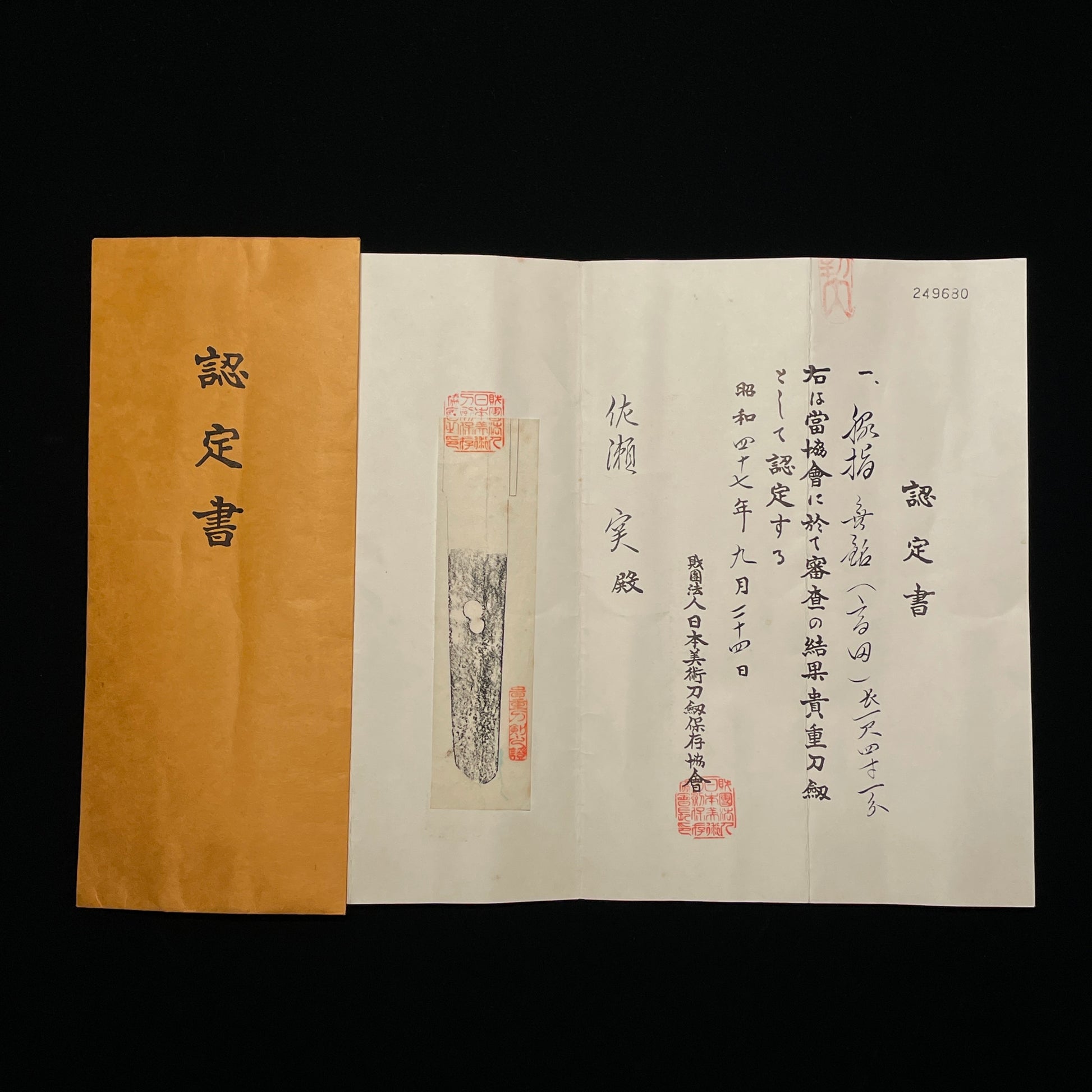 Peony Fittings Takada 高田 Wakizashi, Early Edo period, NBTHK Certificate