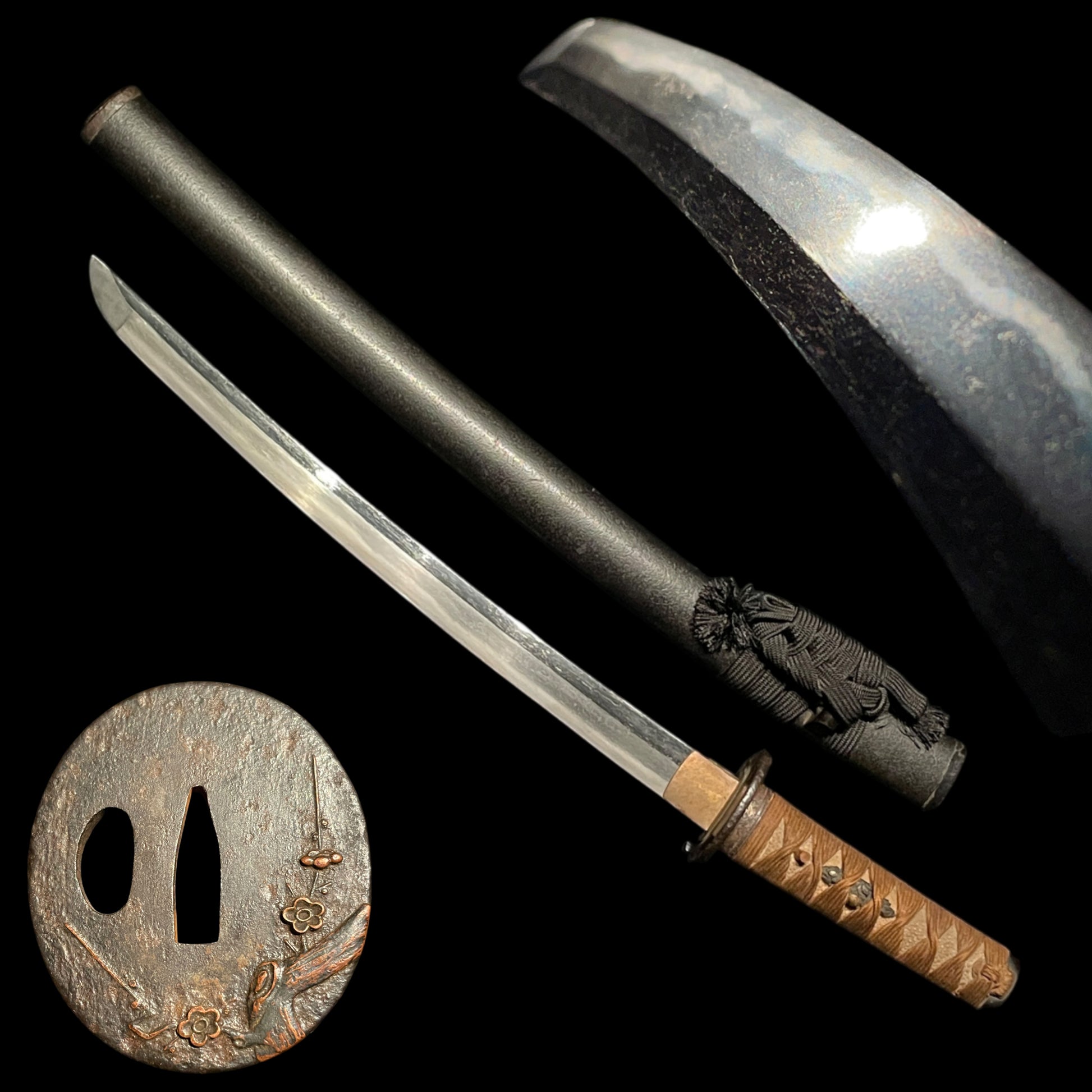 Plum Tsuba Short Wakizashi, Butterfly Fuchi, Edo period mumei