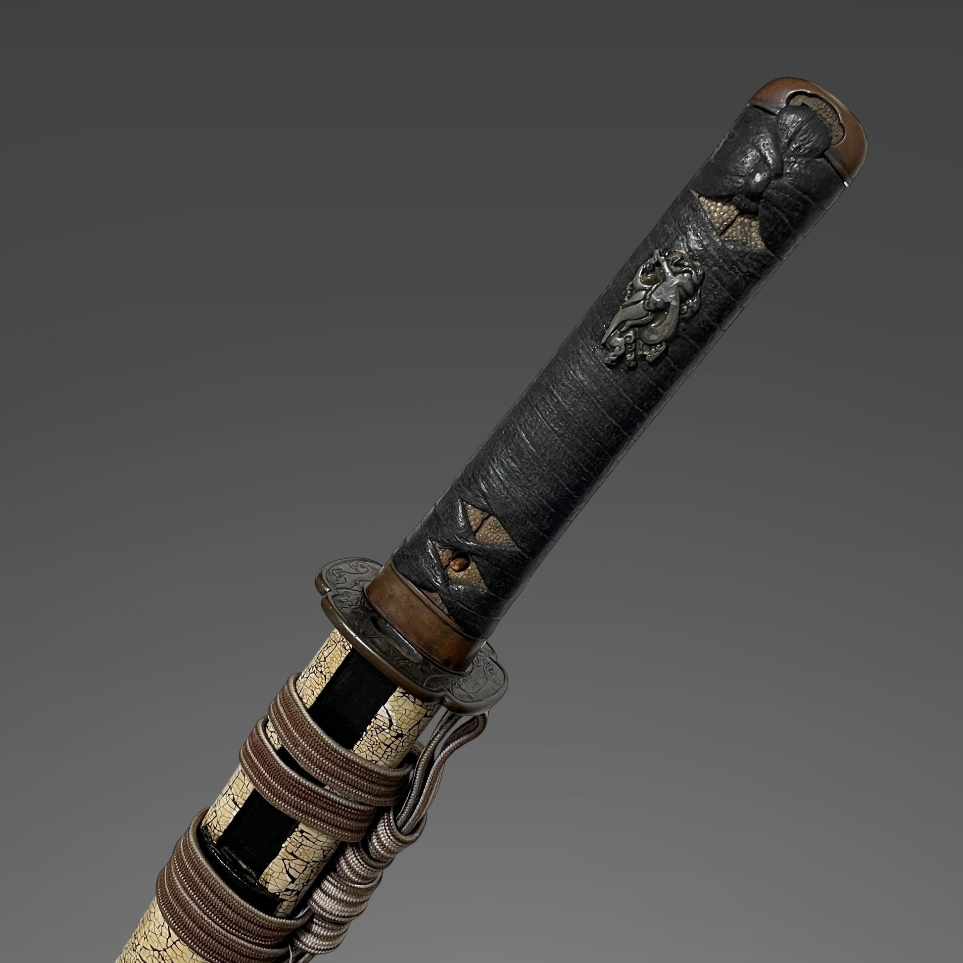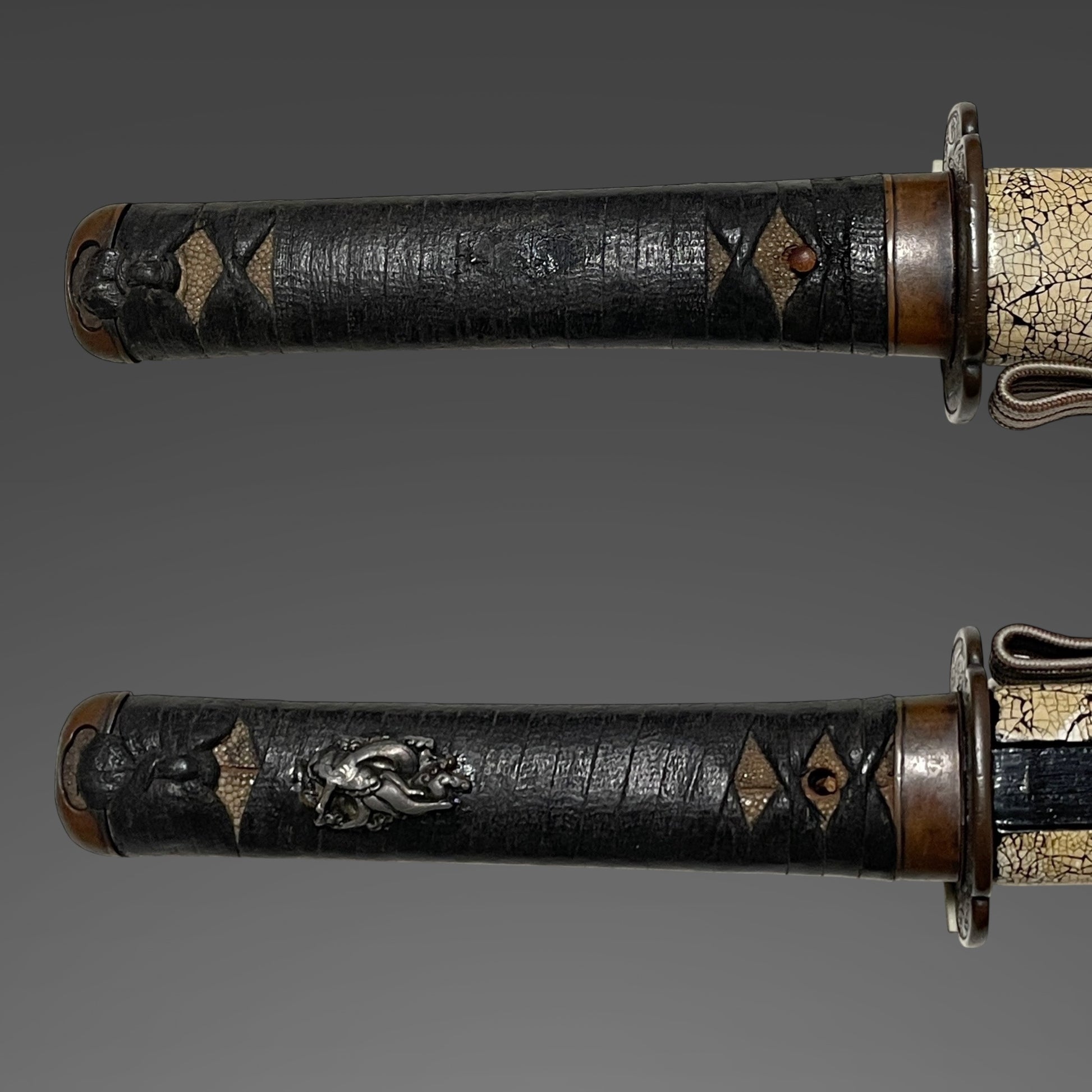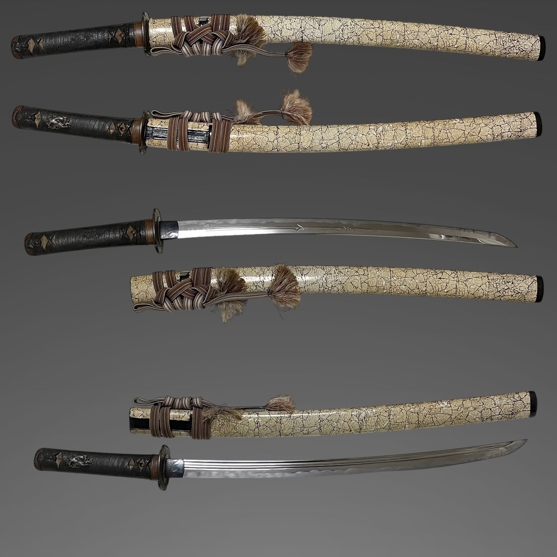 Rankaku-Saya 卵殻鞘, HORIMONO 彫物 Wakizashi, Yamagane Tsuba, Edo period mumei