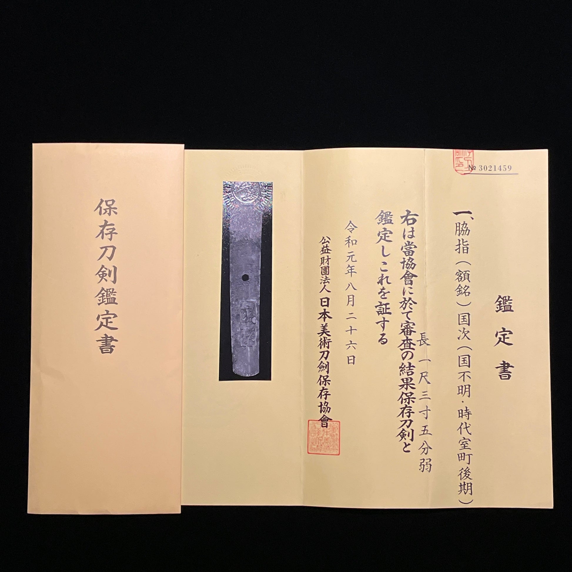 Rare Gakumei 額銘, Kunitsugu 国次 signed Wakizashi, KOTO Muromachi period