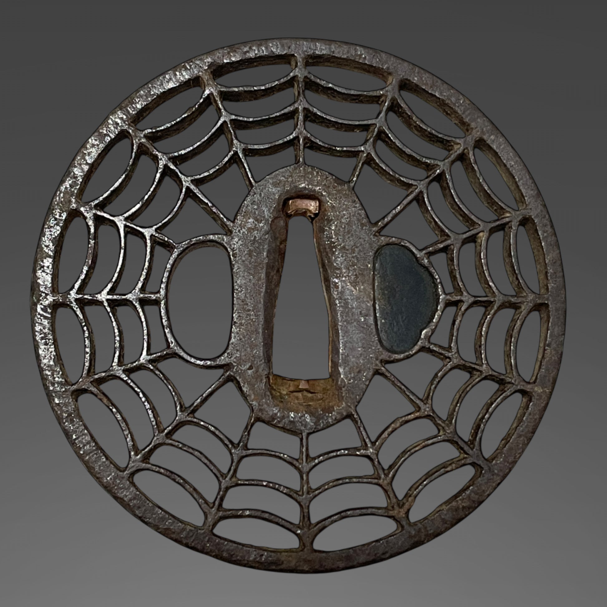 Red Handachi Koshirae for KATANA, Spider's Web TSUBA, 朱半太刀拵 蜘蛛巣透鍔, Edo period