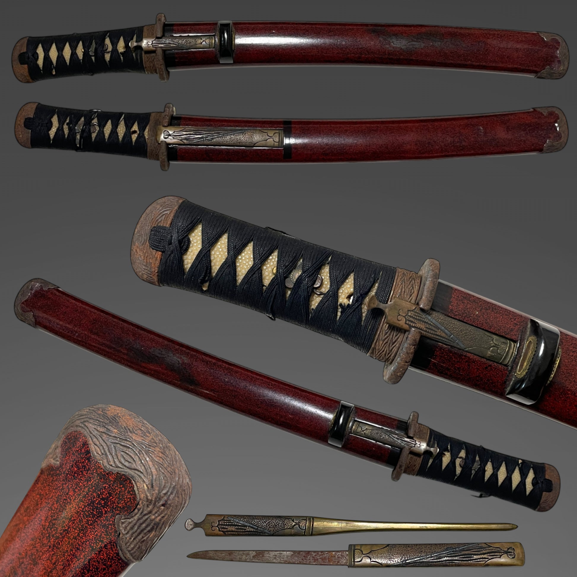 Red Matsushiro Koshirae 松代拵 For TANTO, with Kozuka Kogai, Edo period