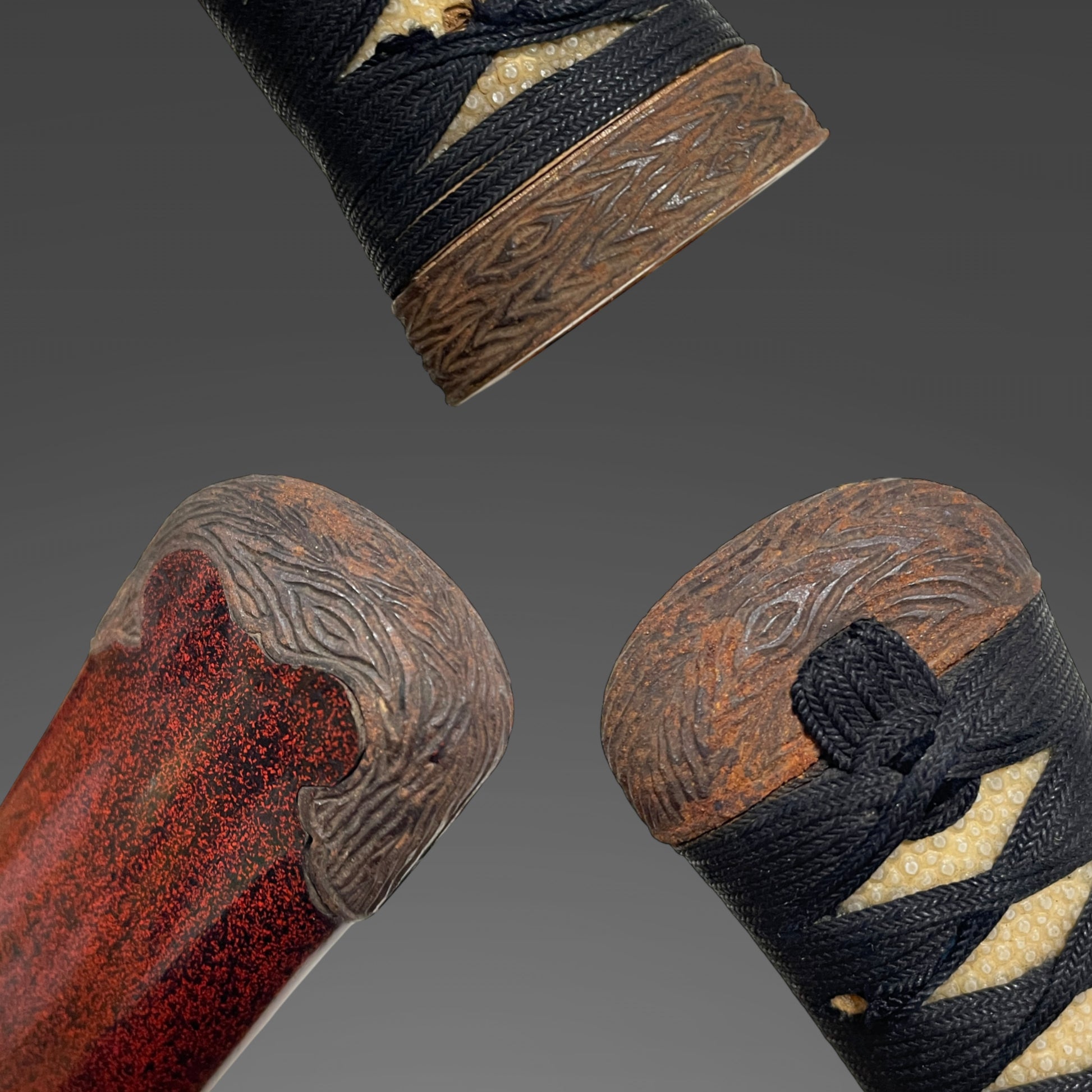 The Fuchikashira and Kojiri are made of iron with a wood grain pattern.