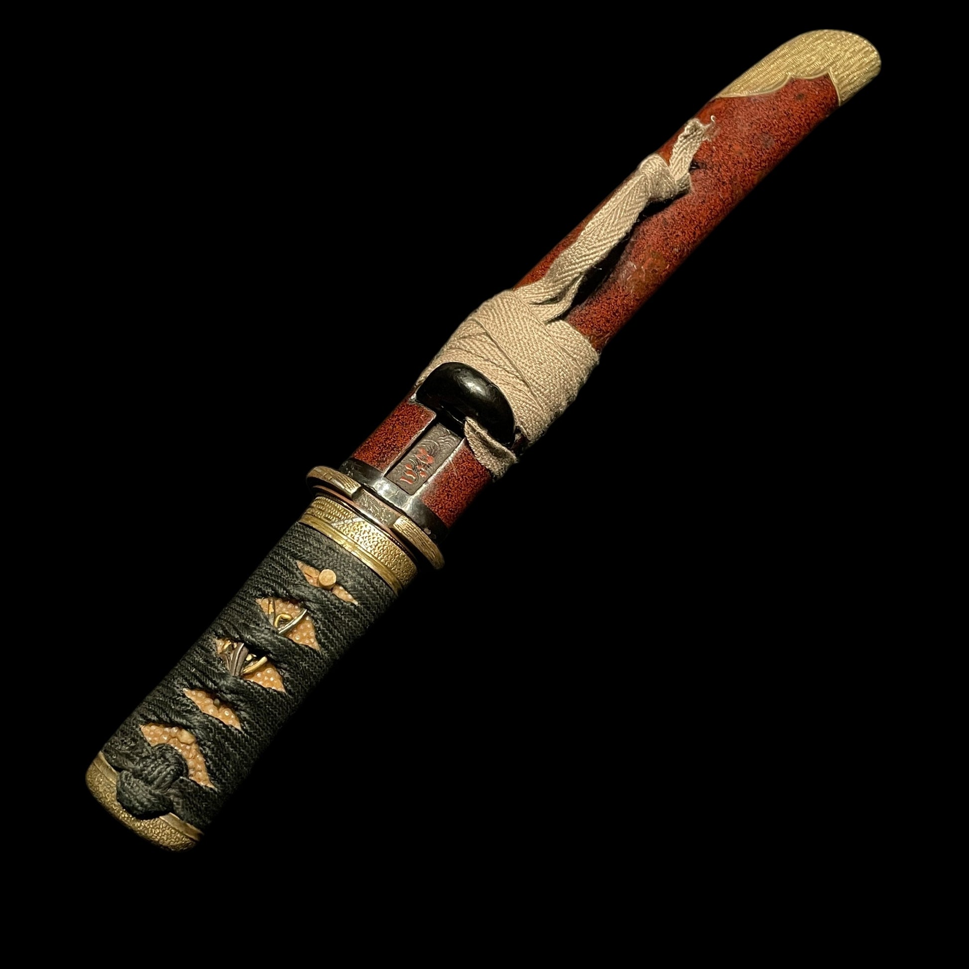 Red Matsushiro Koshirae TANTO, Rare Style blade, Brass Fittings