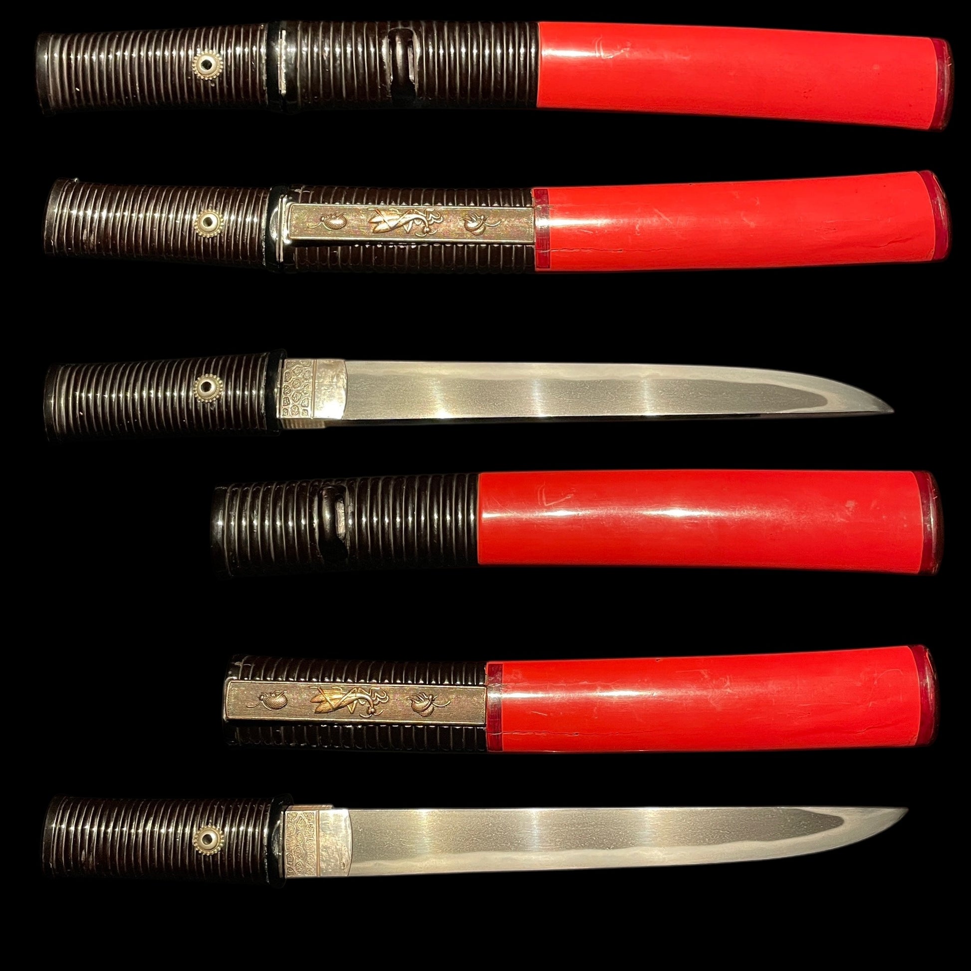 Red Tanto, Koshikizamisaya 腰刻鞘, with Kozuka, Late Edo period mumei