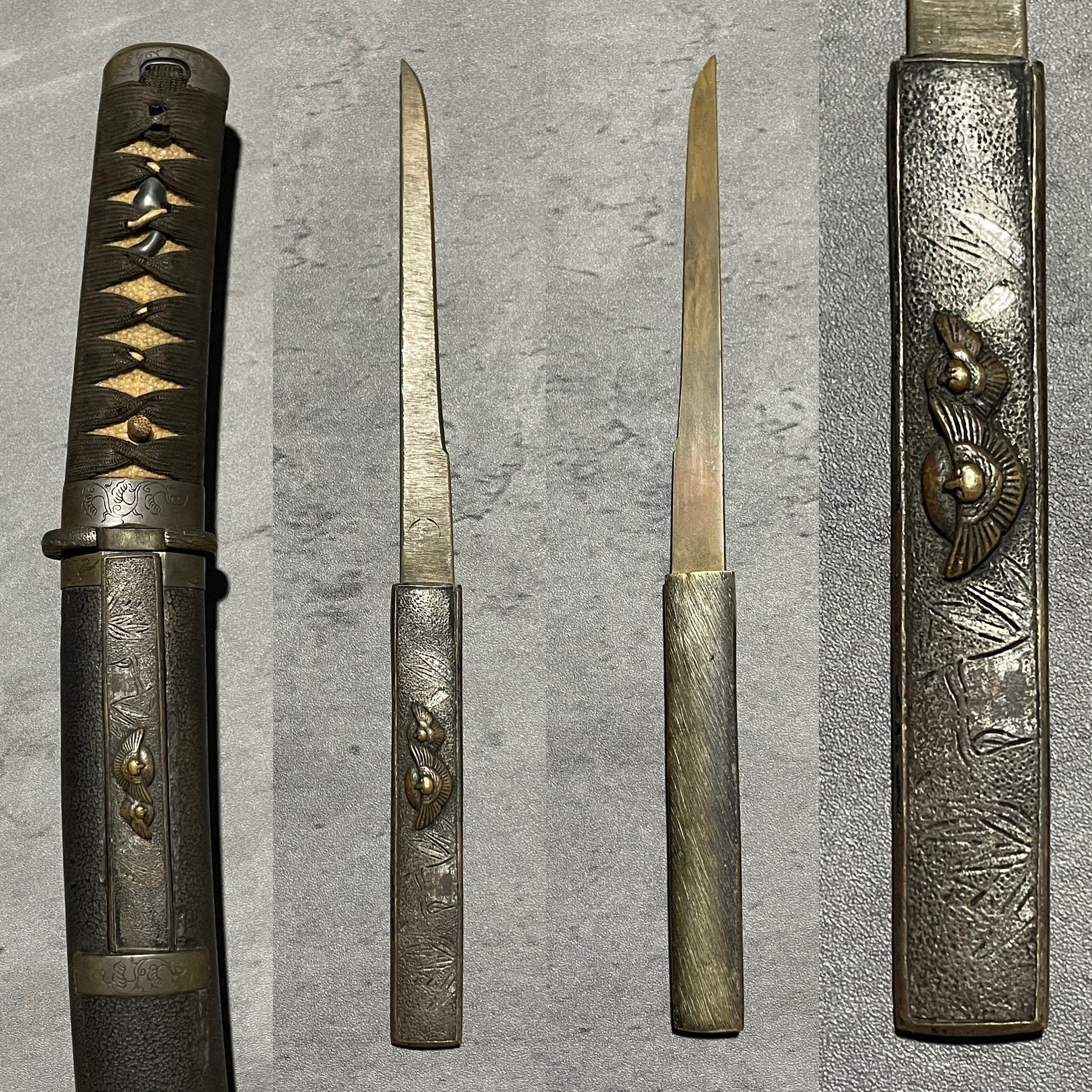 Tanto Koshirae 短刀拵, Karakusa Fittings 唐草文様一作金具, Shibuichi 四分一, with Kozuka