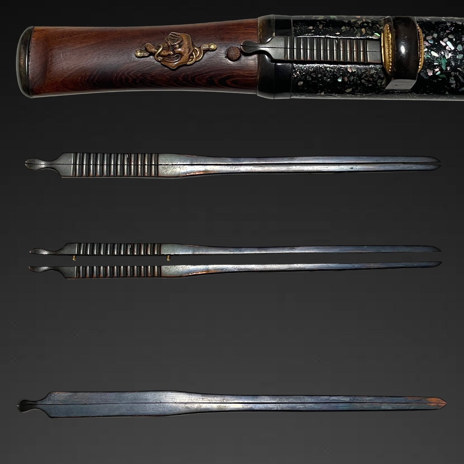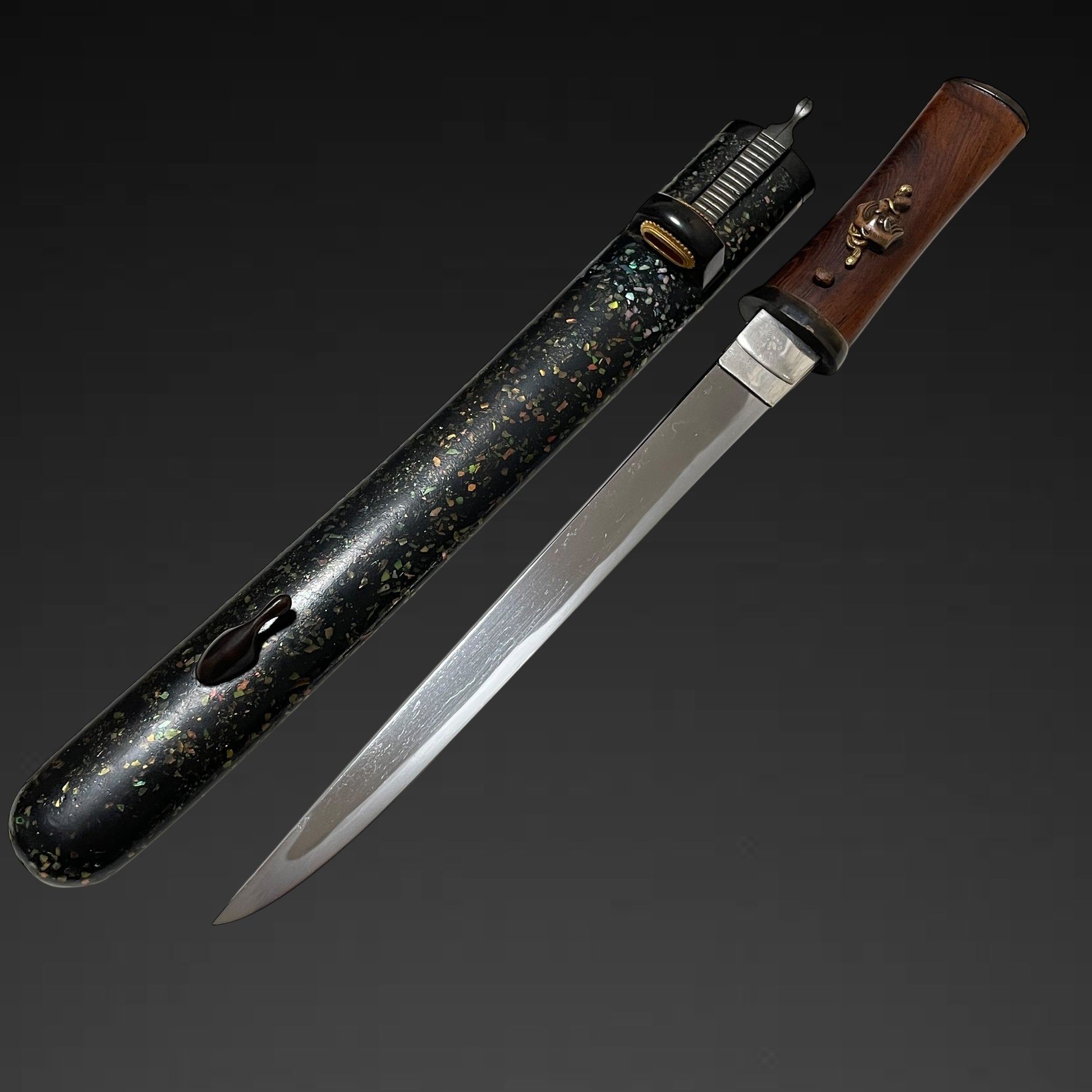 TENGU Menuki 天狗目貫 Aikuchi TANTO, Wari-Kogai and Raden Scabbard, Edo period mumei