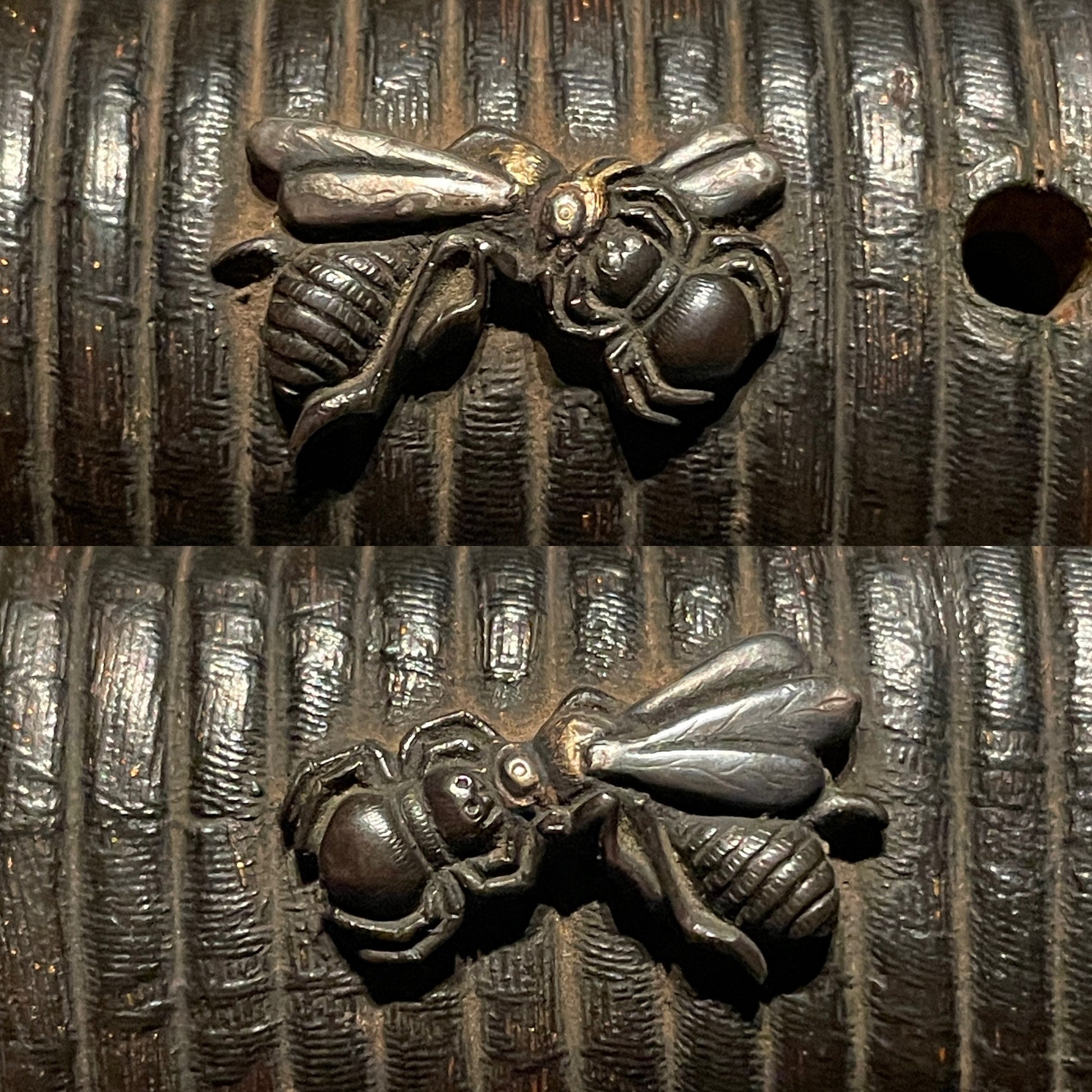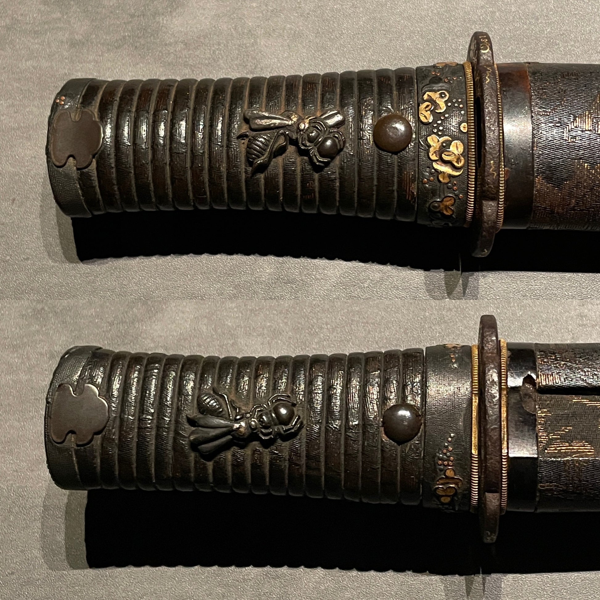 The Menuki features spiders and bees, a popular design called Chiyu(知勇).